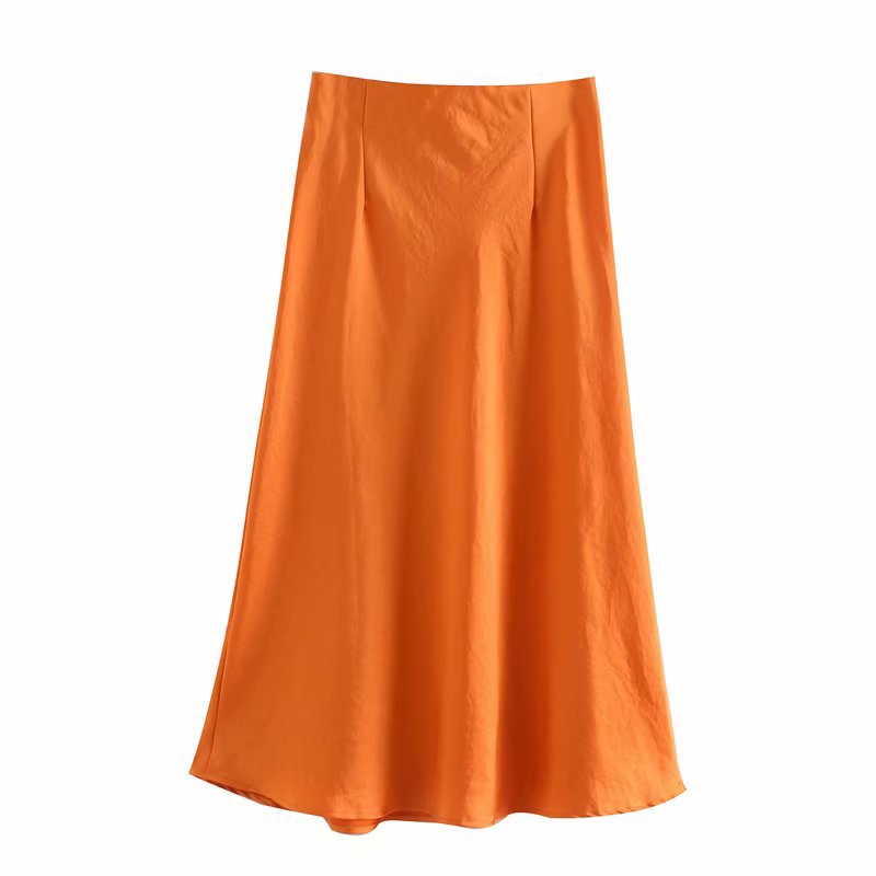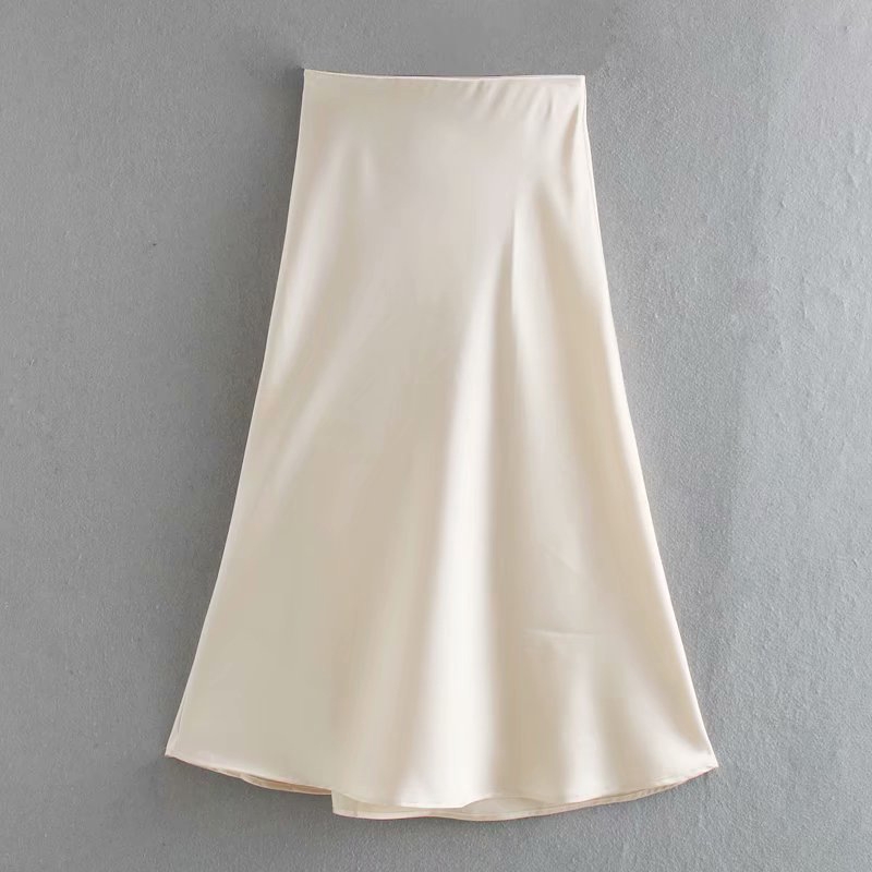 Q_ST9344 Satin solid color skirt European and American style slim skirt