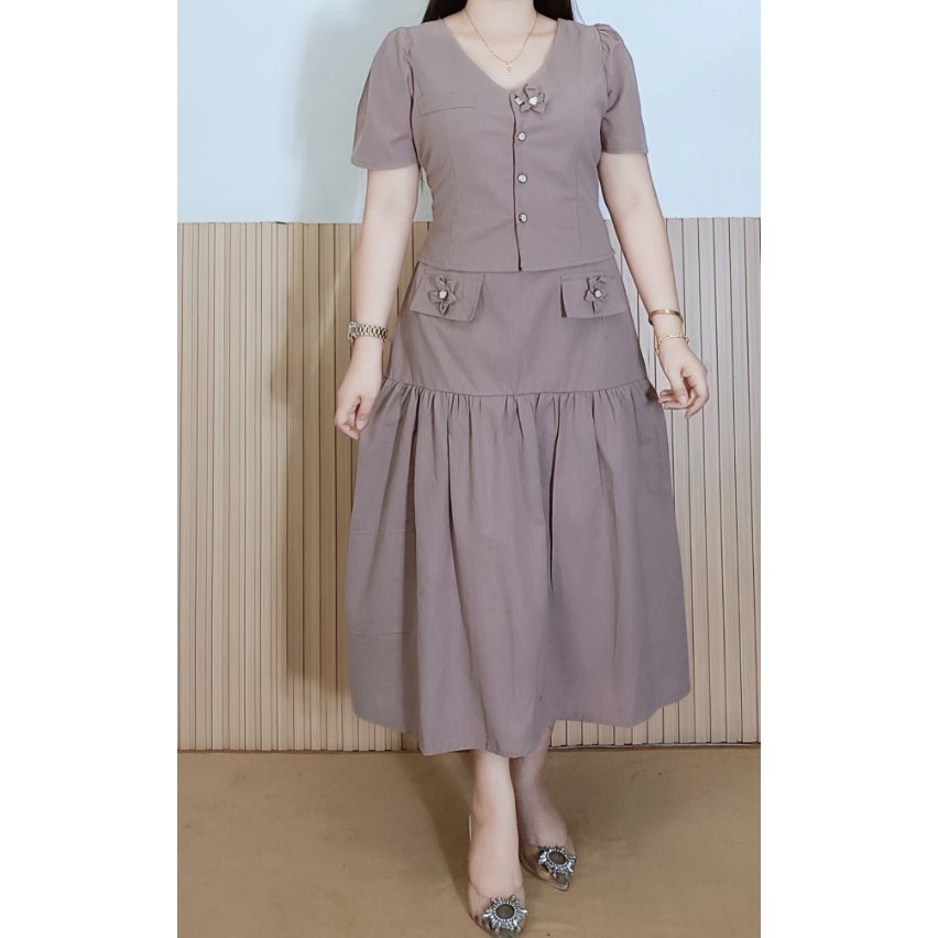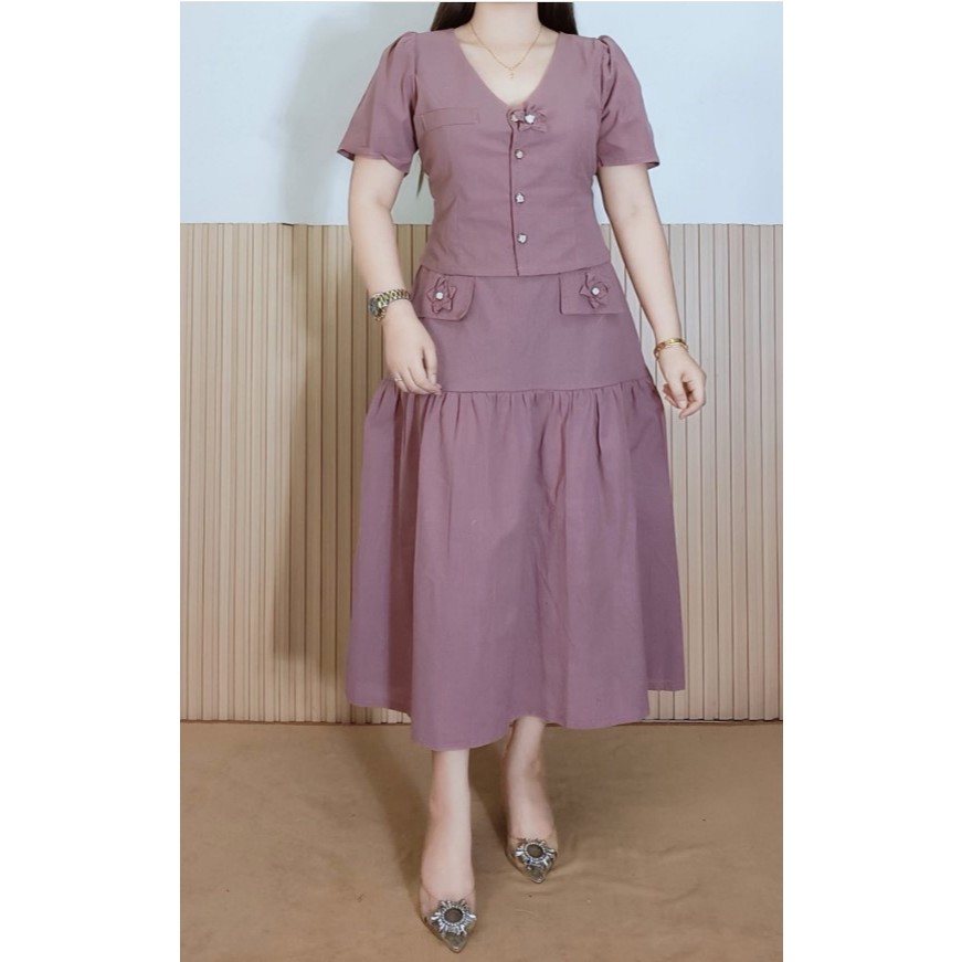 Sheena Terno Skirt | Functional Buttons (with pearl buttons) | Cotton Linen Fabric |Fit Up To Large