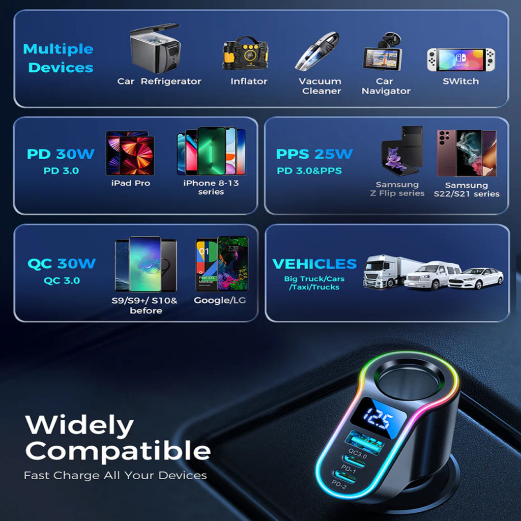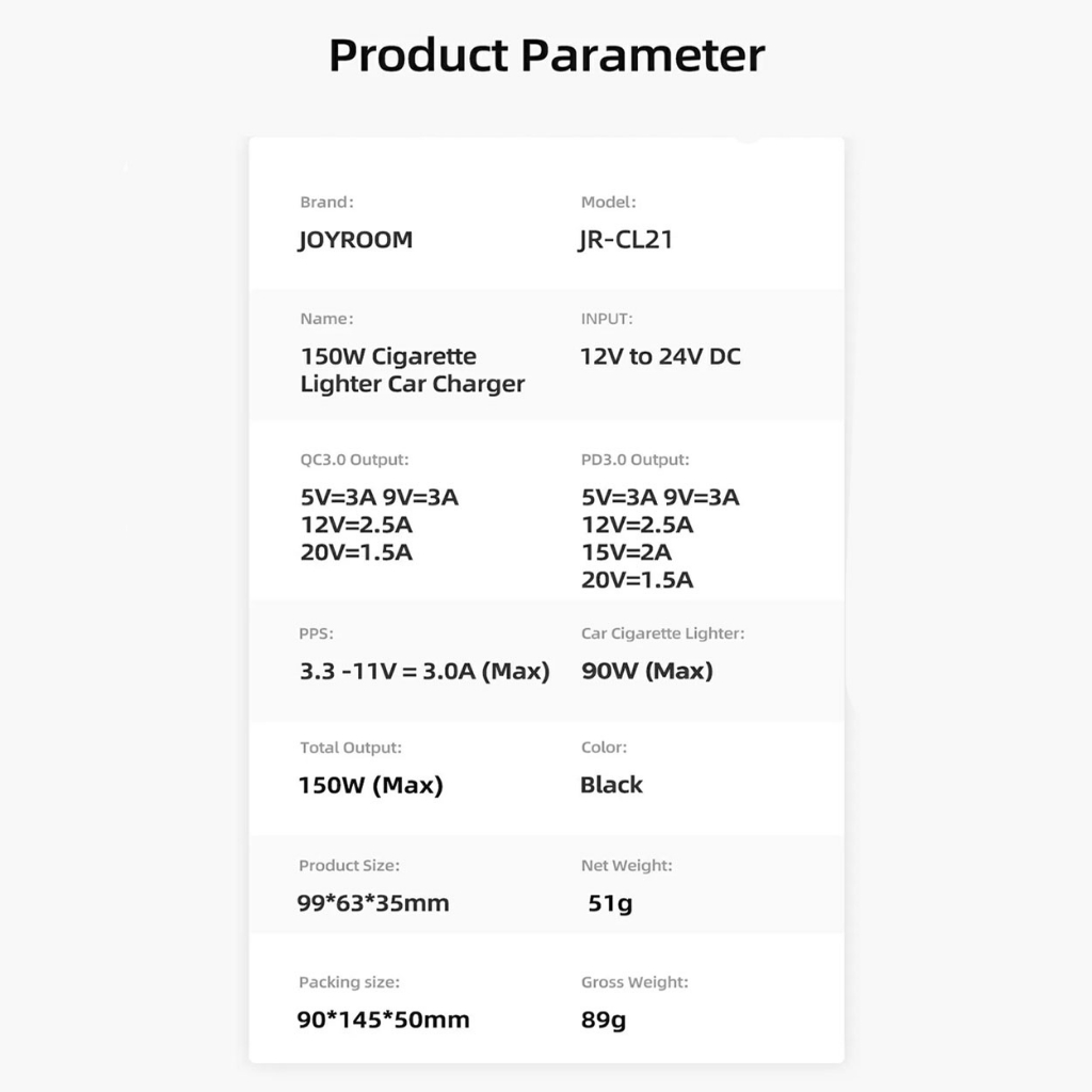Joyroom 150W 4 in 1 Fast Car Charger LED Digital Display PD QC 3.0 Type C Multi Car Charger Adapter