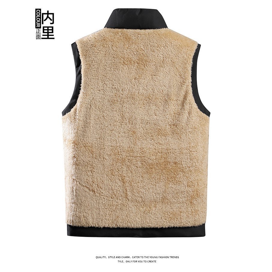 Outdoor Sports Sheep Wool Vest Men's Clothing Down Cotton Vest Warm Fleece-Lined Vest