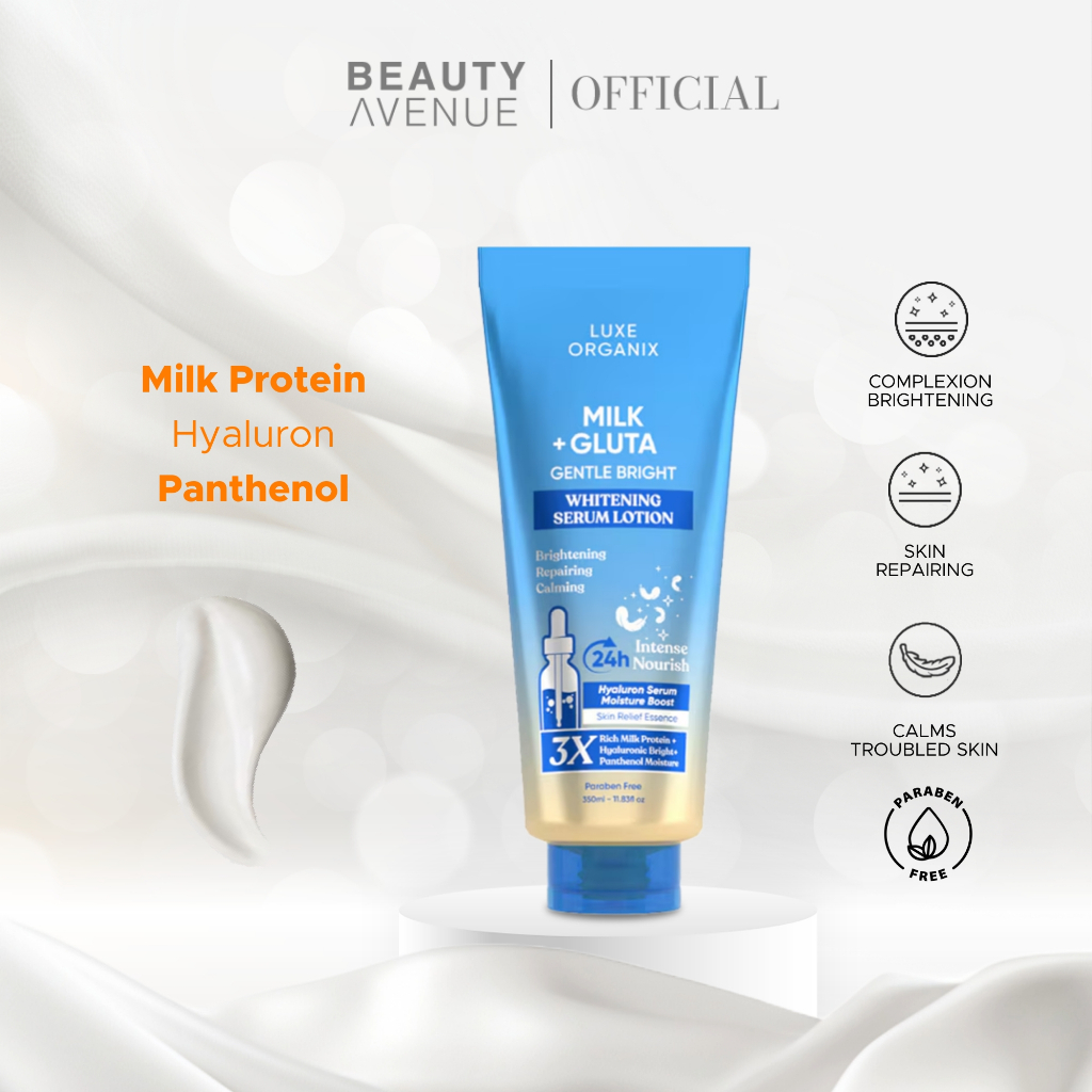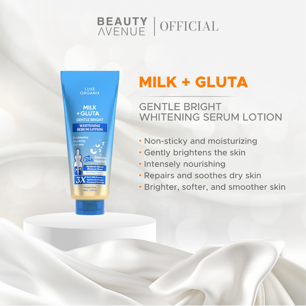 Luxe Organix Milk + Gluta Gentle Bright Whitening Serum Lotion 350ml B1T1