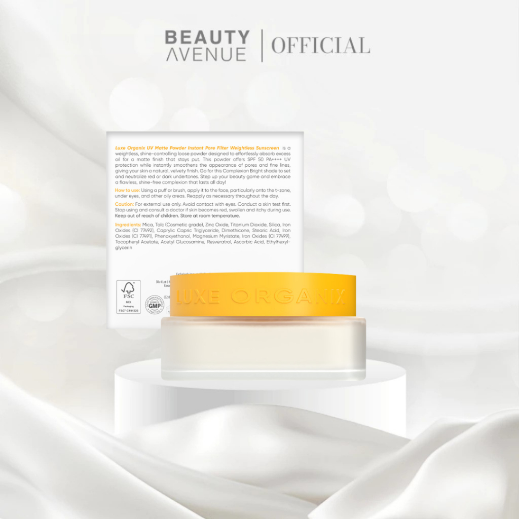 Luxe Organix UV Matte Powder Instant Pore Filter Weightless Sunscreen Complexion Bright 15G