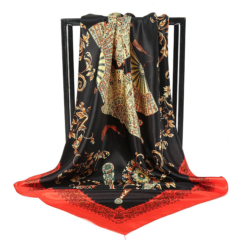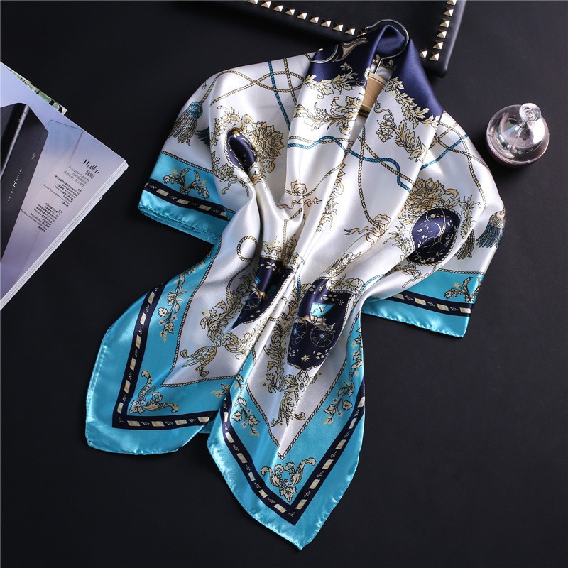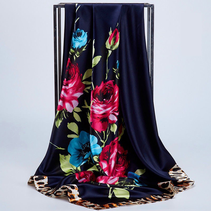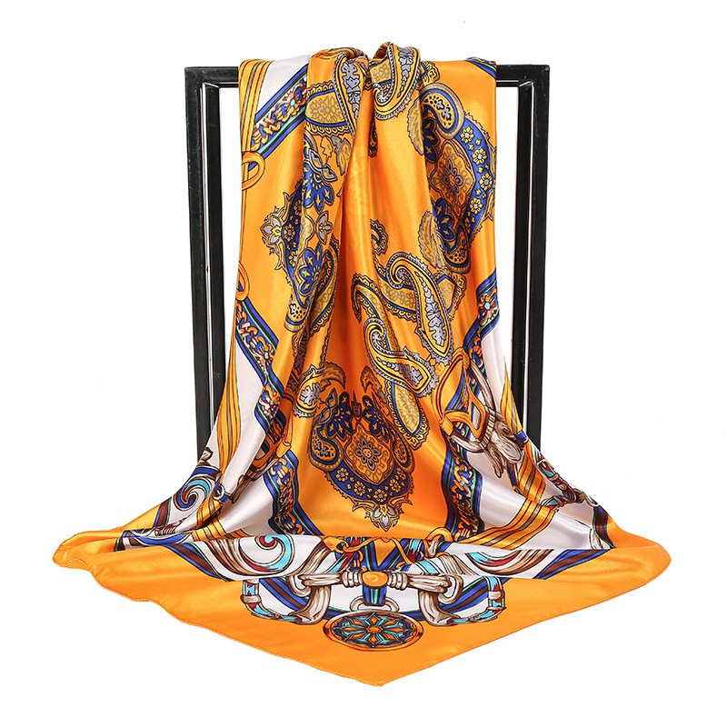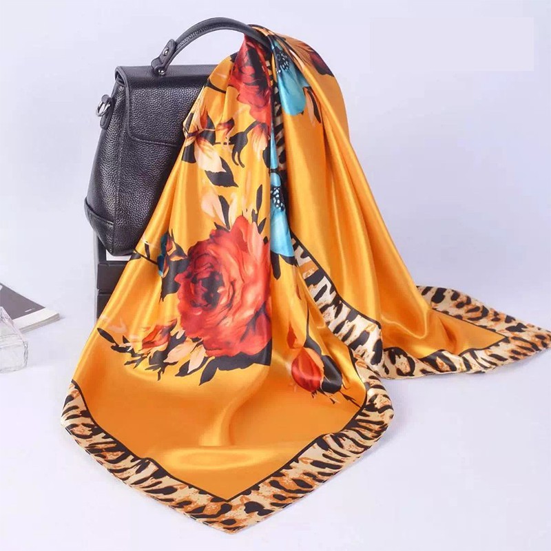New Square Silk Scarf Women 90*90cm Satin Print Silk Hijab Scarves Female Shawls Chest Wrap Hair Head Scarf Bandana Beach Pareo