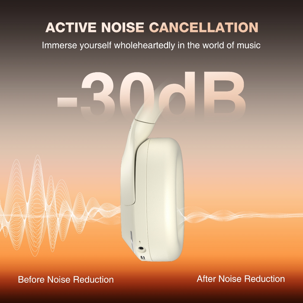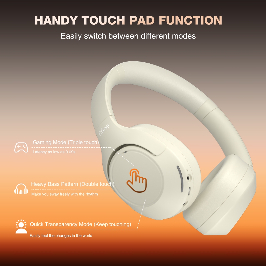 FIFINE X3 Beige Bluetooth Wireless Headphones, Over-Ear Noise Cancellation Headphones 65H Battery