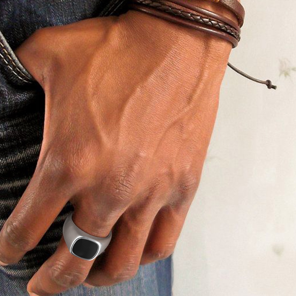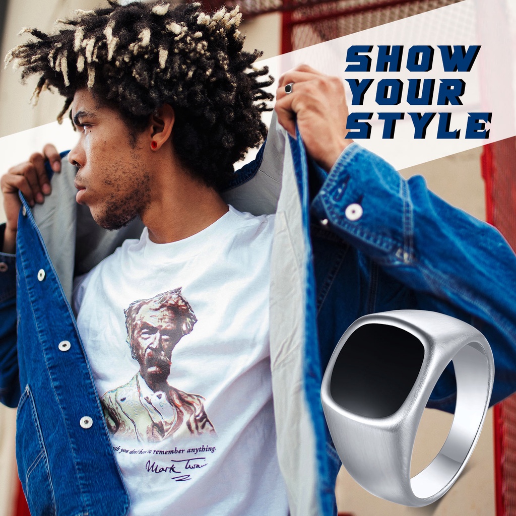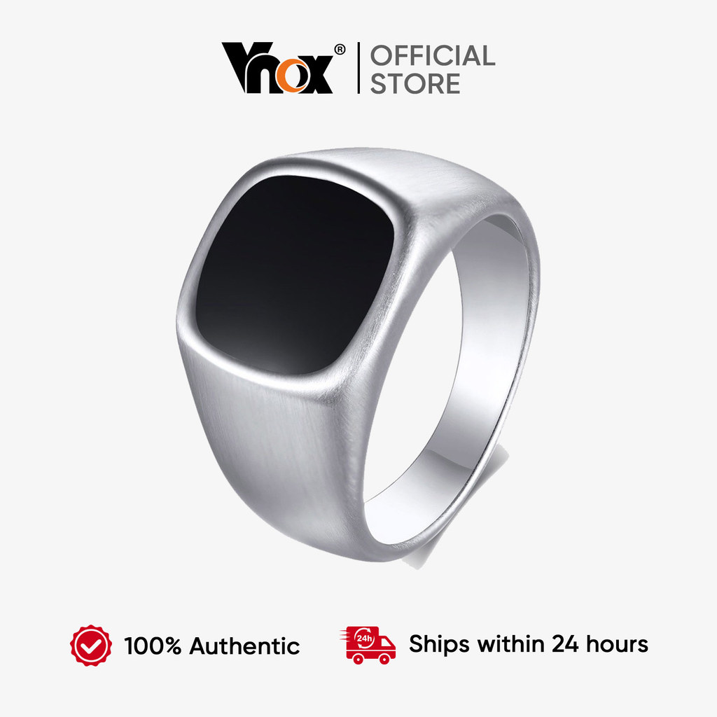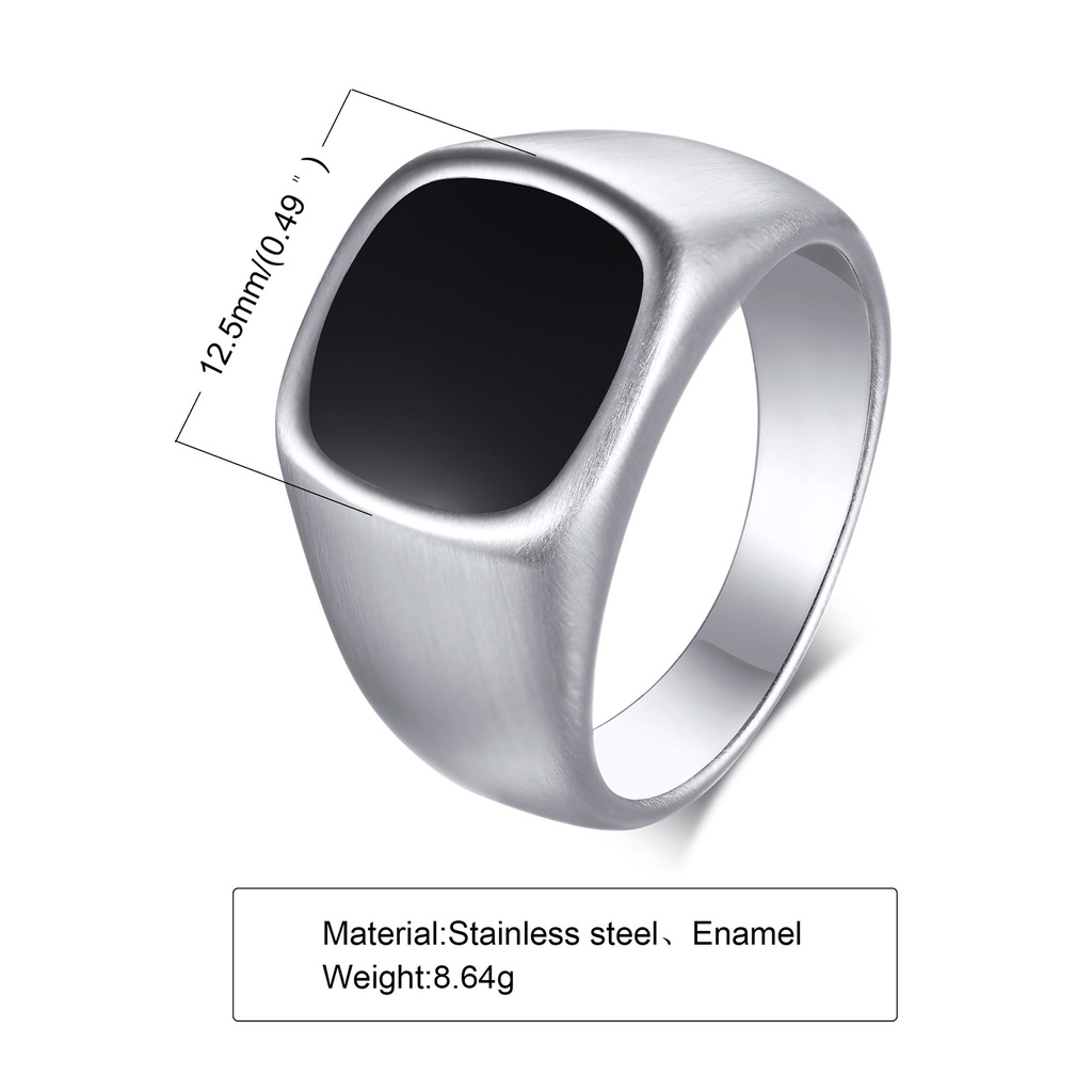 Vnox Men Black Enamel Ring,Stainless Steel Square Enamel Signet Ring