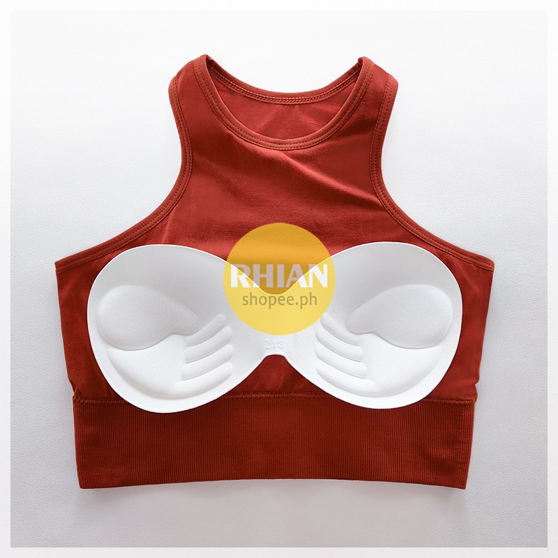 Rhian women sports bralette with foam Korean sexy push up Sleeveless knitted yoga Crop tops padded