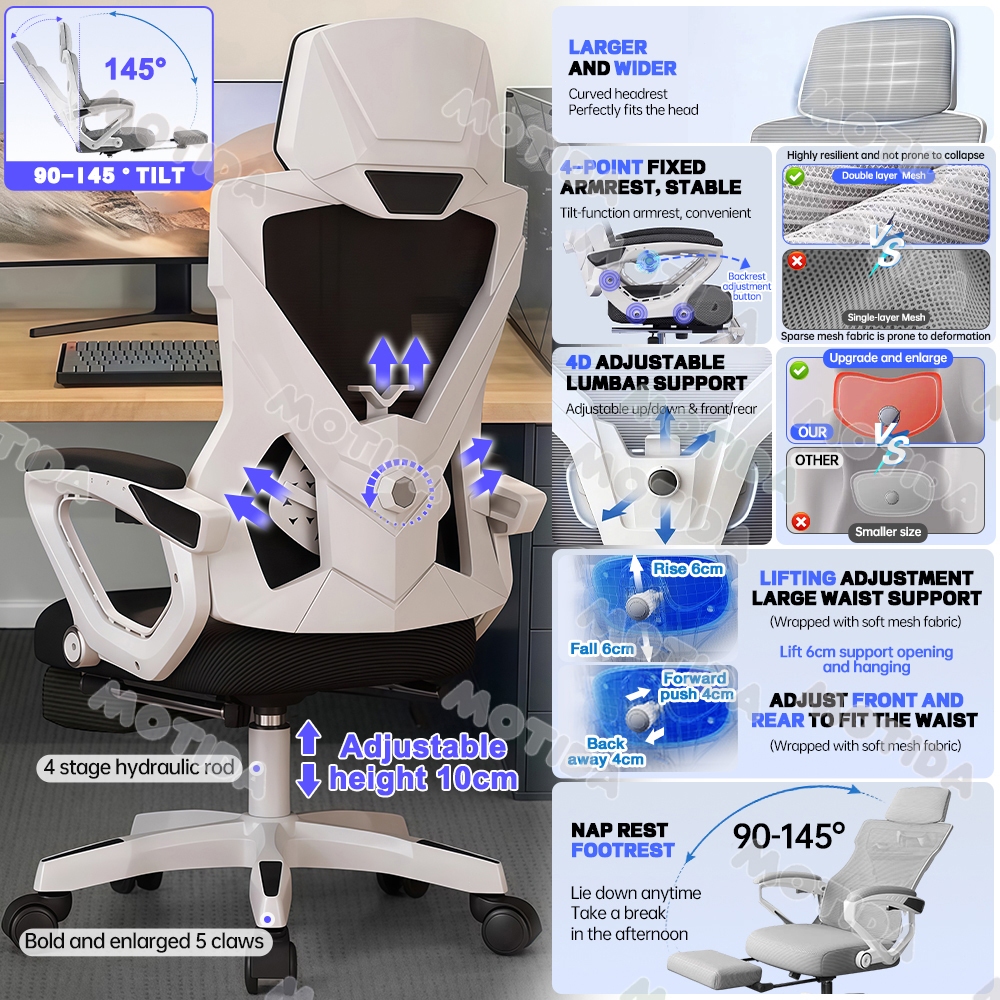 4D Ergonomics Chair Office Chair Mesh Chair Computer Korean Chair Gaming Chair With Footrest
