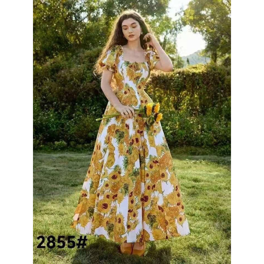women summer floral print hawaiian maxi dress
