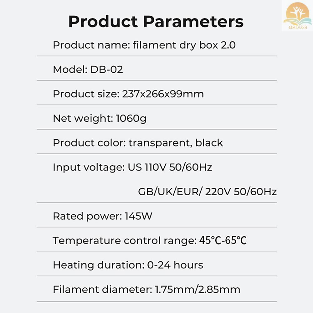 [MMOO] Creality Filament Dryer Box 2.0 360° Hot-air Heating 1.75mm and 2.85mm Filaments Support 24 Hours Timer Real-time Humidity Monitoring Adjustable Temperature Range 45°℃-