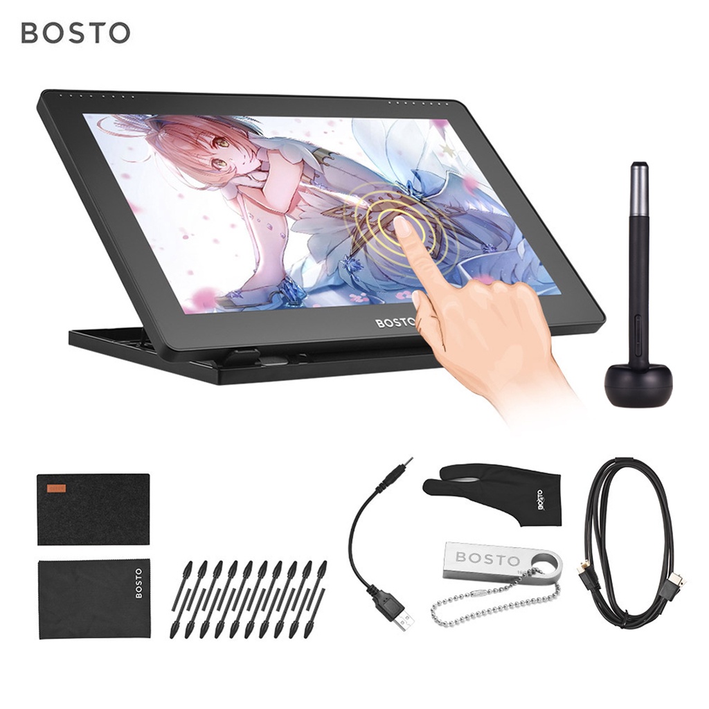 ❤ready stock❤ BOSTO 16HDT Portable 15.6 Inch H-IPS LCD Graphics Drawing Tablet Display Support Capacitive Touchscreen 8192 Pressure Level Active Technology USB-Powered Low Consumption Drawing Tablet with Interactive Stylus Pen