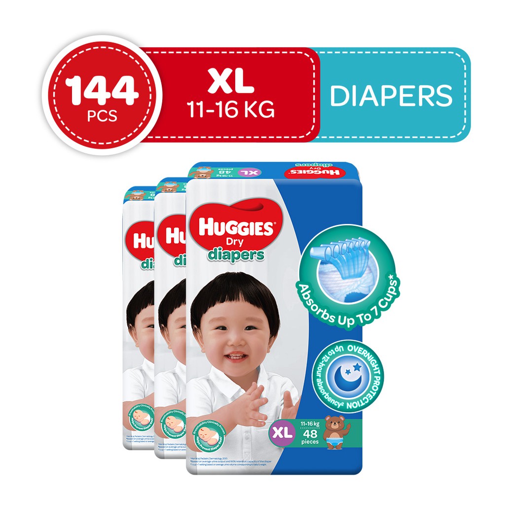 Huggies Dry Diapers XL 3 packs 144 Pieces