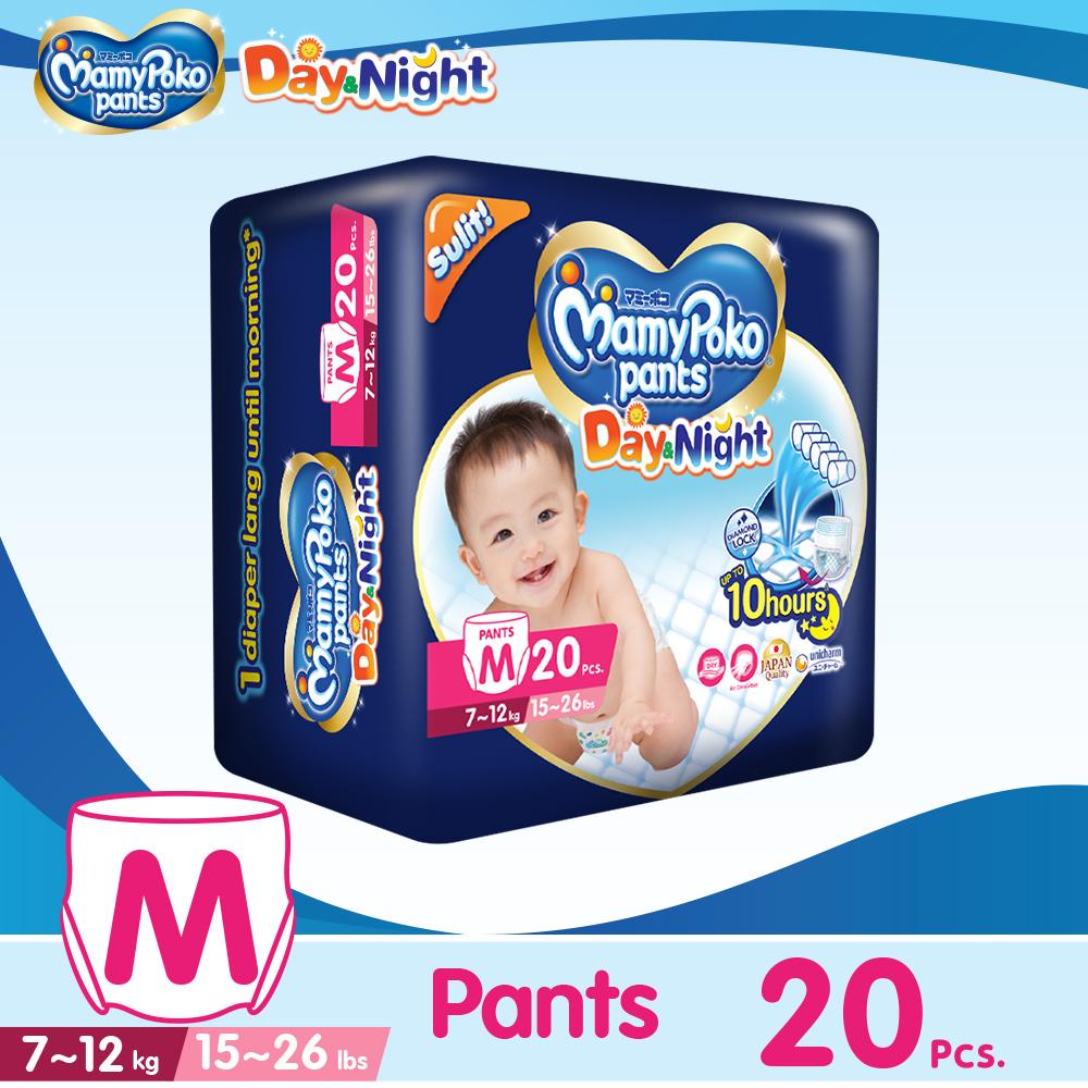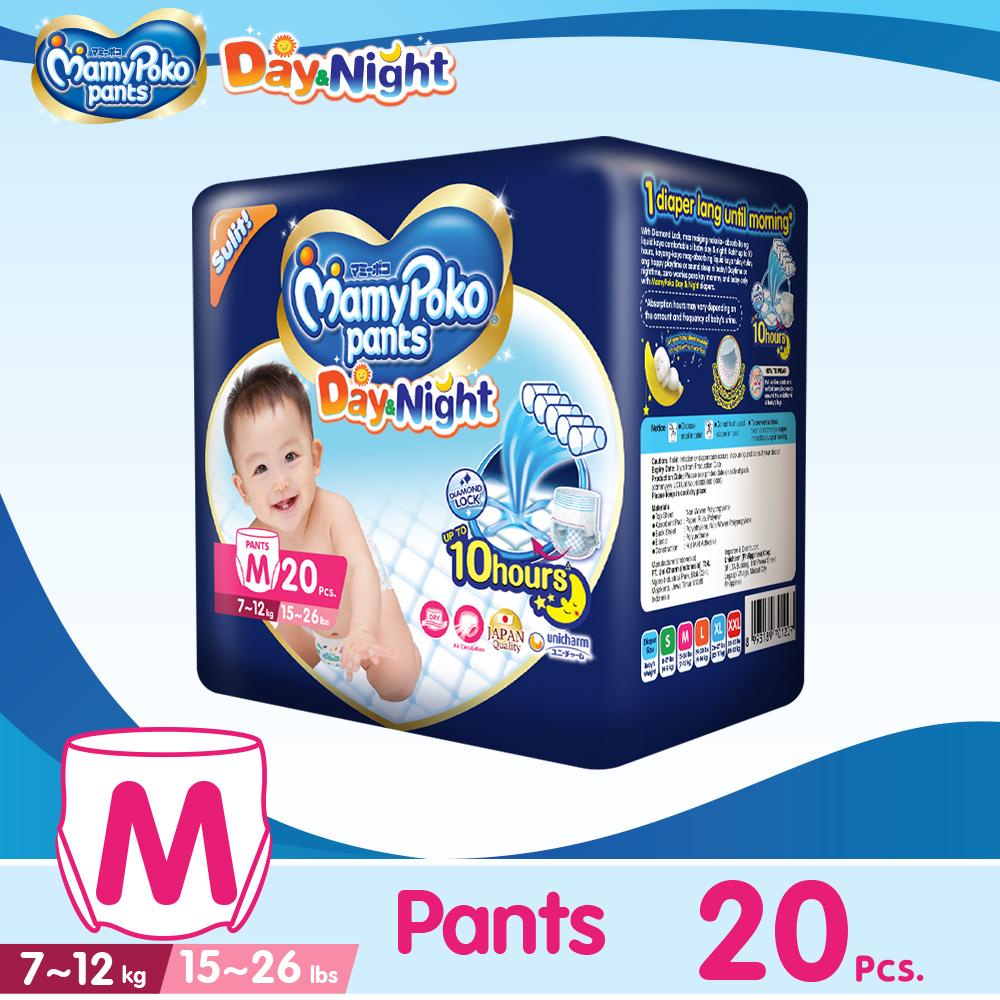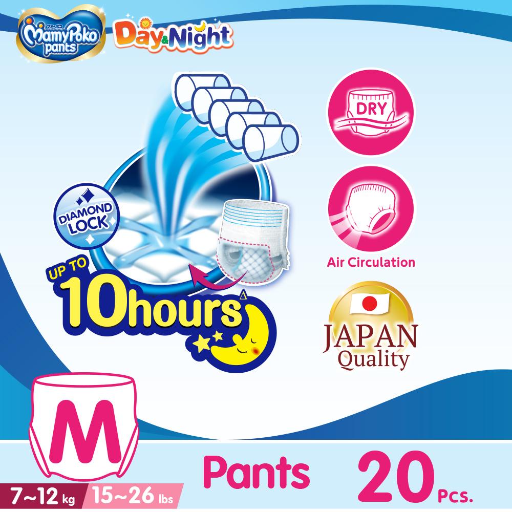 MAMYPOKO Day and Night Baby Disposable Diaper Pants Unisex Medium 20 pcs