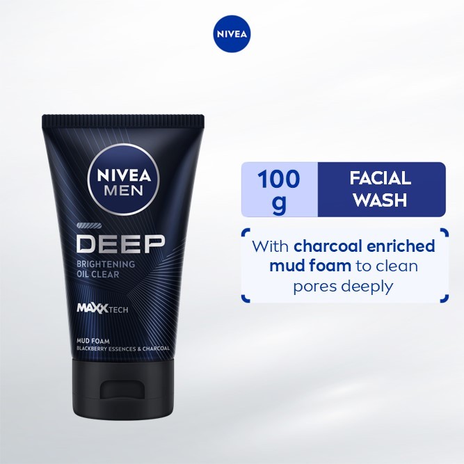 NIVEA Men Facial Wash Deep Oil Clear Mud Foam, cleanser for oily skin, skin care for men, 100g