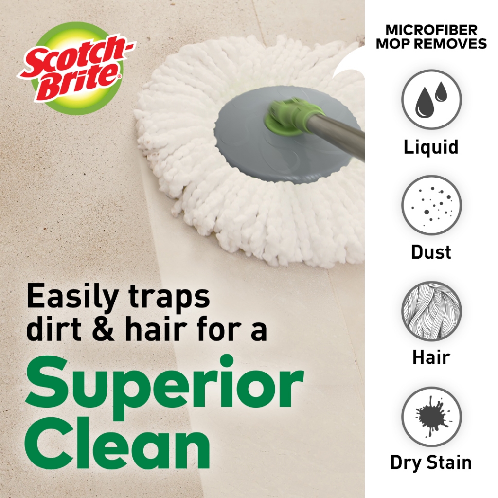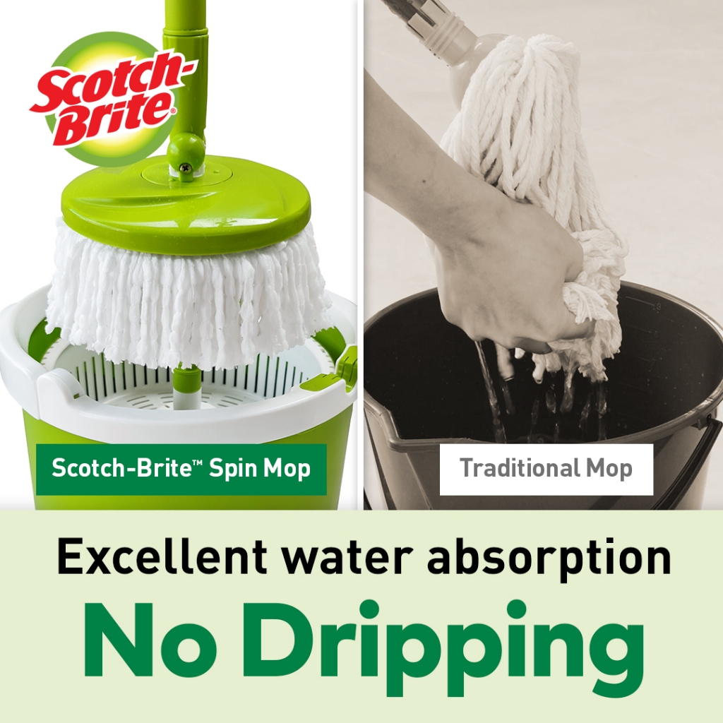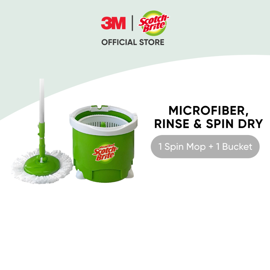 3M™ Scotch-Brite™ Green Single Spin Mop, Dry & Spin Wash, Single bucket for washing and drying