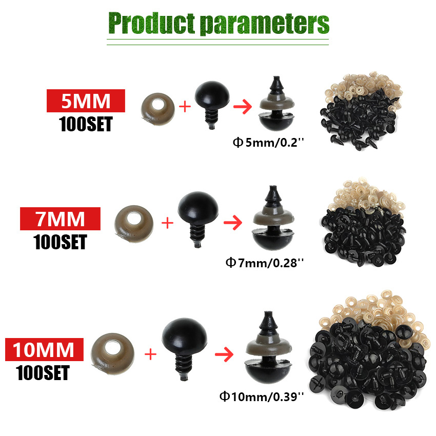 【In Stock】100pcs 5 7 10mm Eyeball Black Plush Eyes Toys Kids Diy Craft Eyes Animal Doll Accessorie