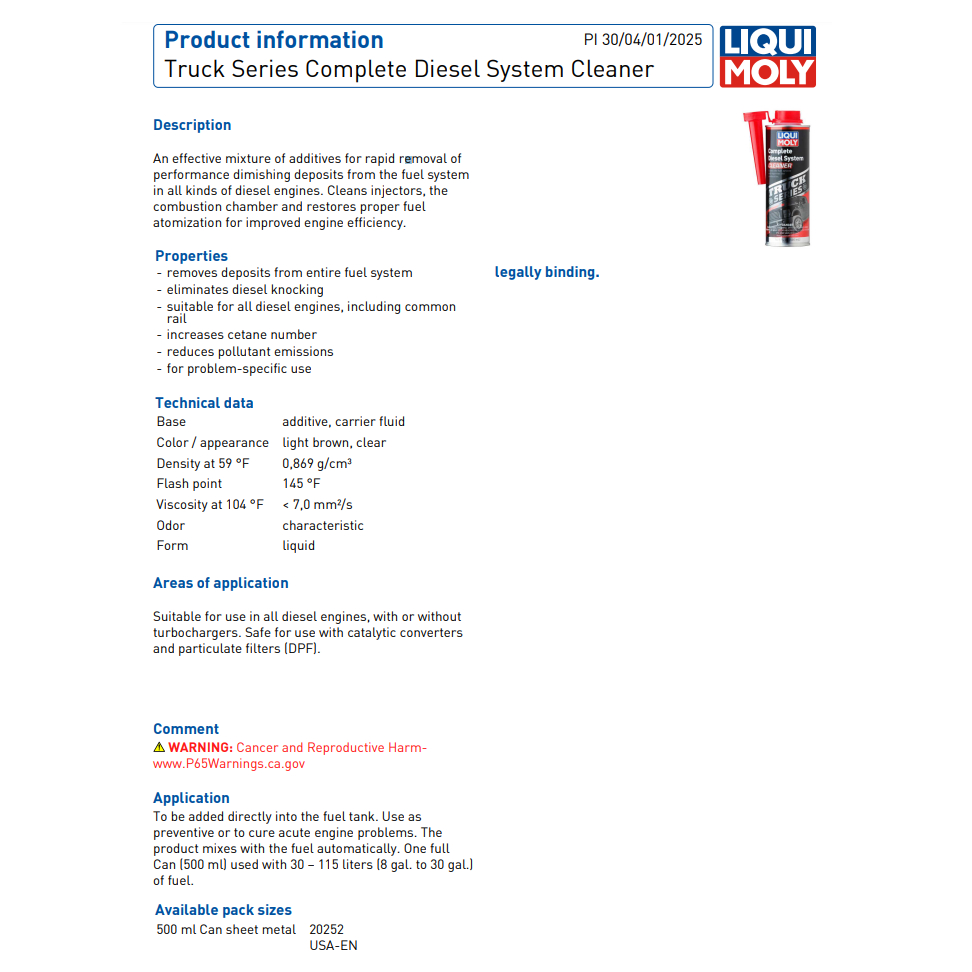 Liqui moly Truck Series Complete Diesel System Cleaner 500ml - Diesel Injector Cleaner