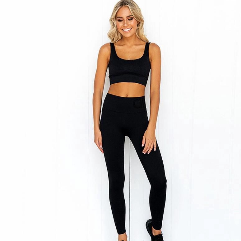2PCS Sports Suits Seamless Yoga Sets Running Fitness Gym Pants High Waist Straps Sport Leggings High Elasticity Bra Pant