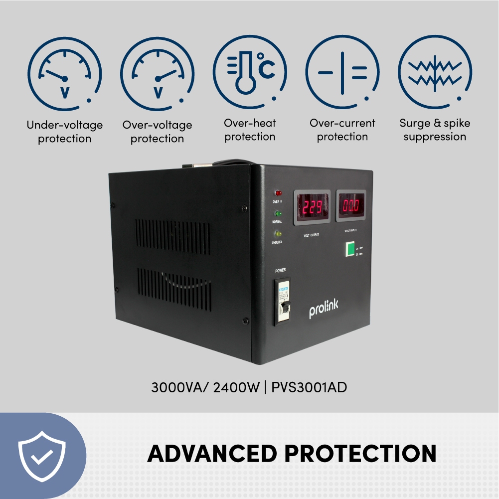 PROLiNK PVS3001AD 3000VA 2400W Servo Motor Control Industrial Grade Stabilizer