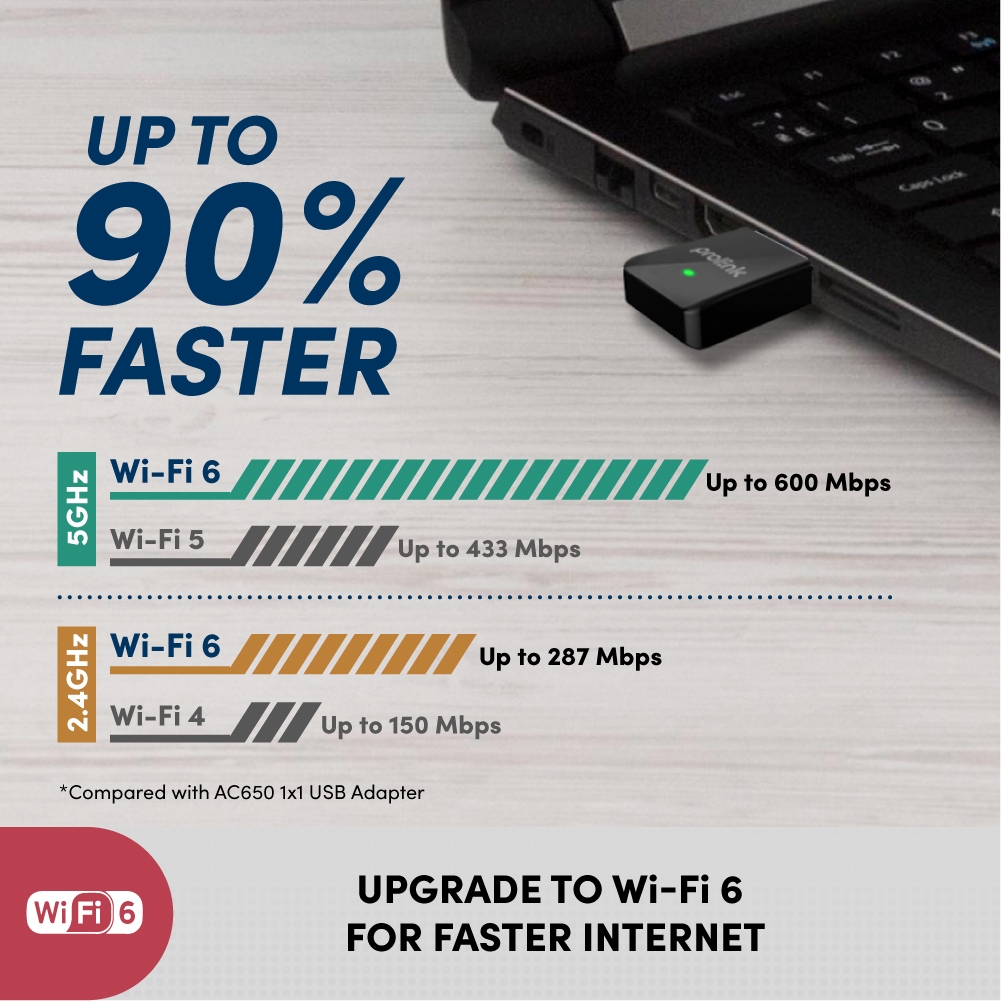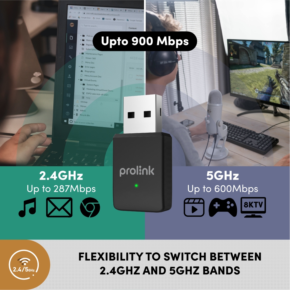 AC650 WiFi Dongle Wireless USB Adapter | WiFi Adapter | WiFi Receiver PC | AX900 Wifi6 Dualband