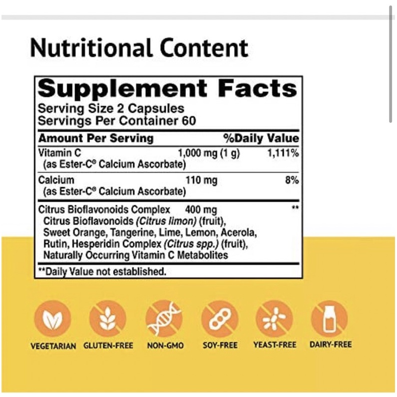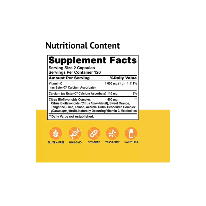 American Health Ester C 500mg 120 / 240 caps w/ citrus bioflavonoids - Non-Acidic