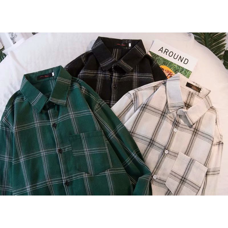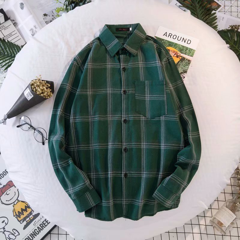 Fashion Men's Long Sleeve Shirts Plaid Shirts Loose Plaid Casual Polo Shirts