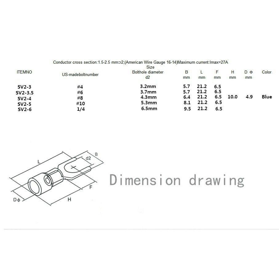 50PCS/Pack SV2-3/SV2-3.5/SV2-4 Blue Cable Wire Connector Furcate Pre-Insulating Fork Spade 16~14AWG Wire Crimp Terminals