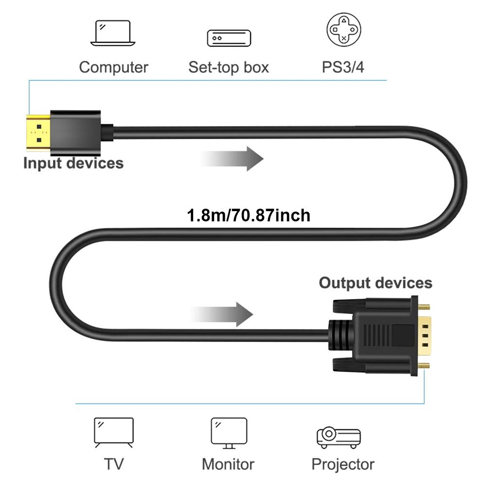 HDMI To VGA Cable 1.8M 1920 x 1080P HDMI-compatible Male to VGA Male for TV Box PC Laptop Monitor