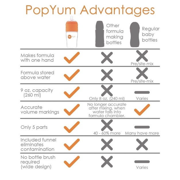 Authentic *** PopYum Anti-Colic Formula Making/Mixing/Dispenser Baby Bottles