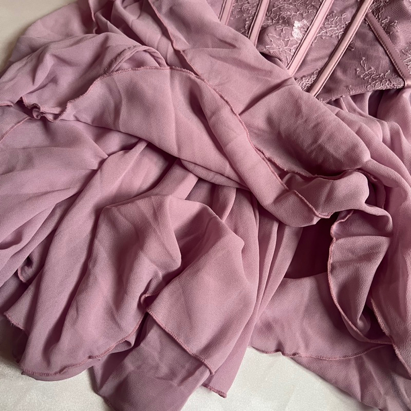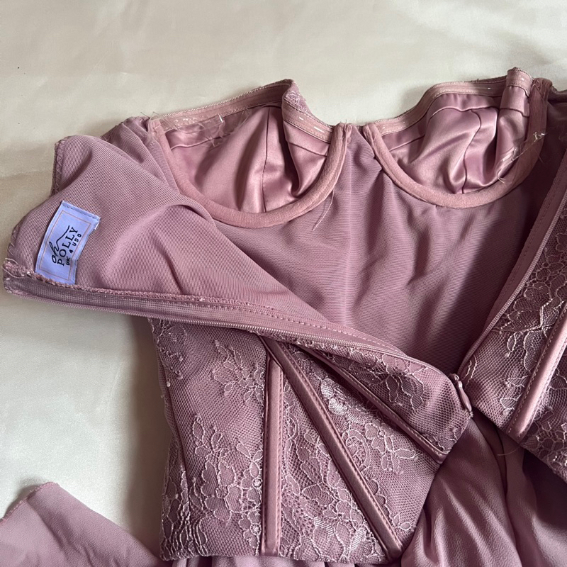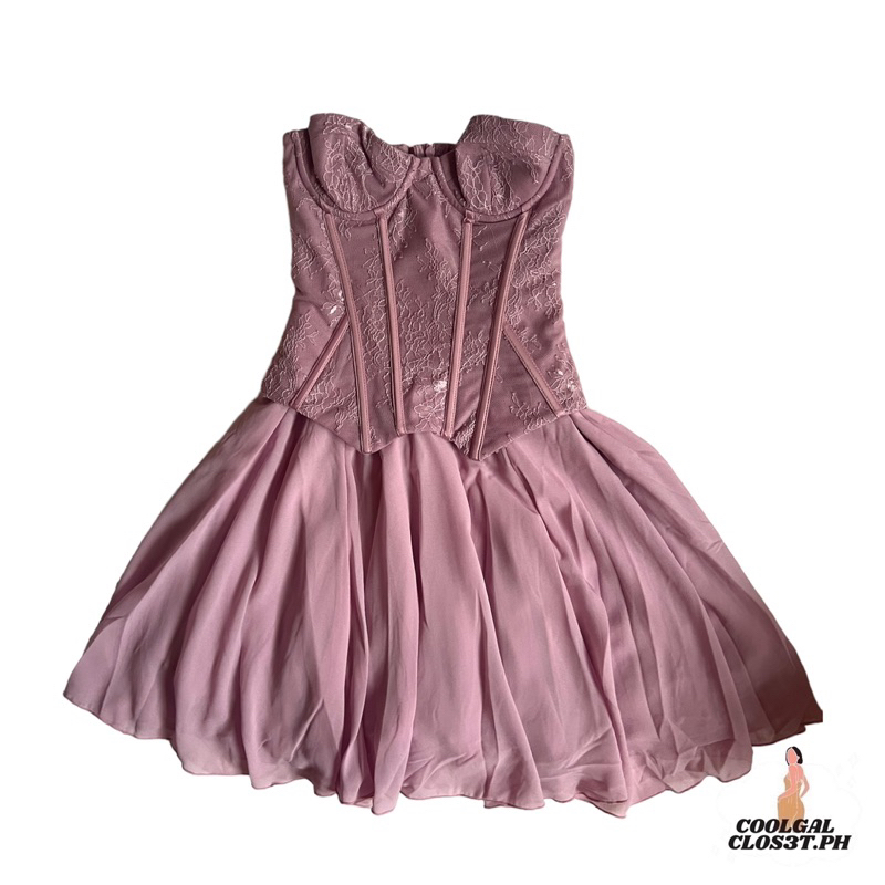 Oh Polly ~ Chloe Strapless Lace Corset Mini Dress in Dusty Pink