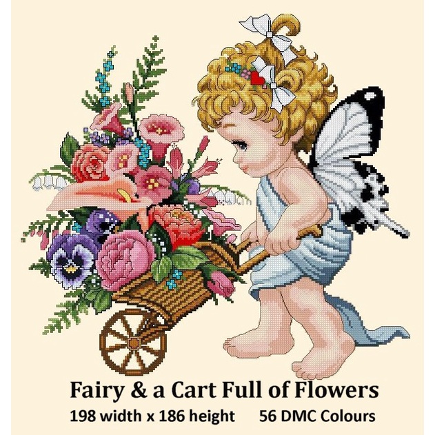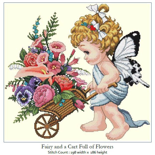 Cross Stitch PATTERN only -Fairy -Cart Full of Flowers