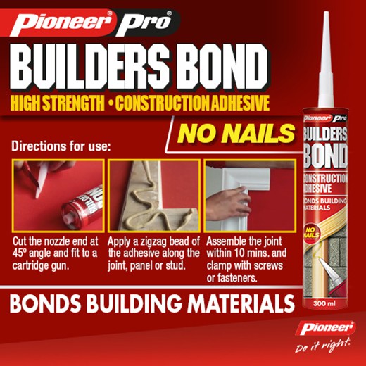 Pioneer Pro Builders Bond No Nails Construction Adhesive 300ml Cartridge x12