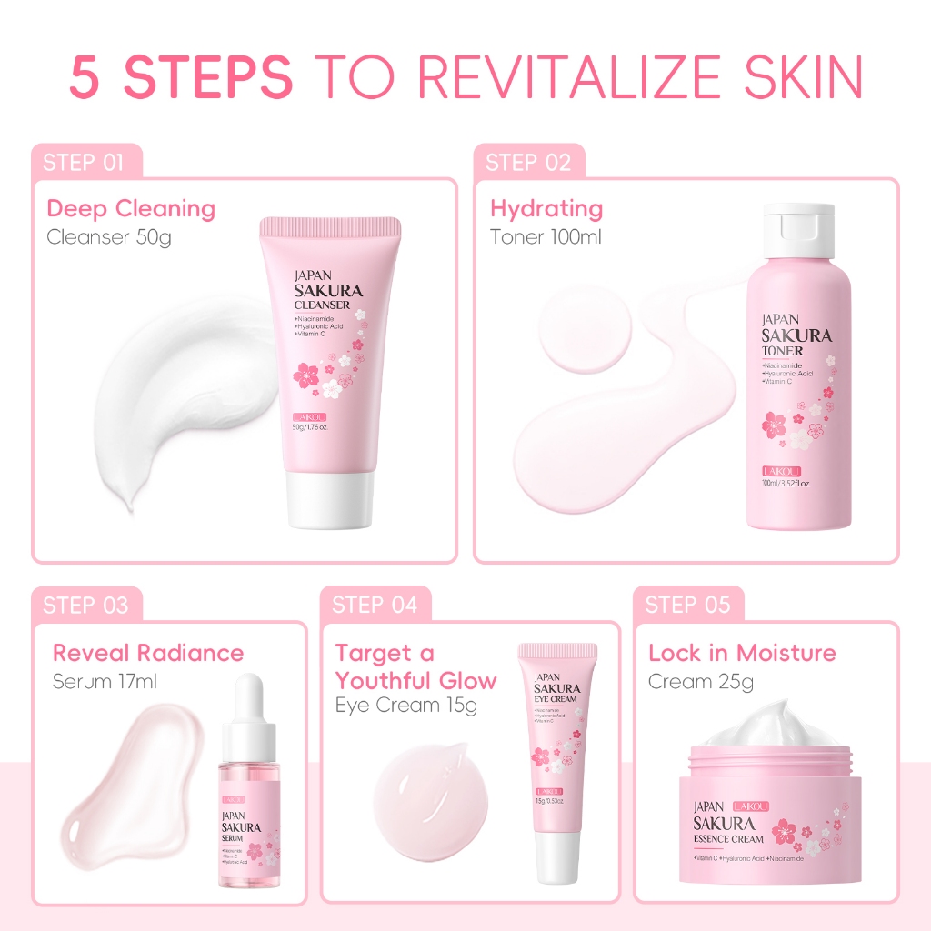 [free gift] Brightening & Hydrating Sakura Set | Toner Moisturizer Serum | Fades Dark Spots | for All Skin | LAIKOU Japan Skincare