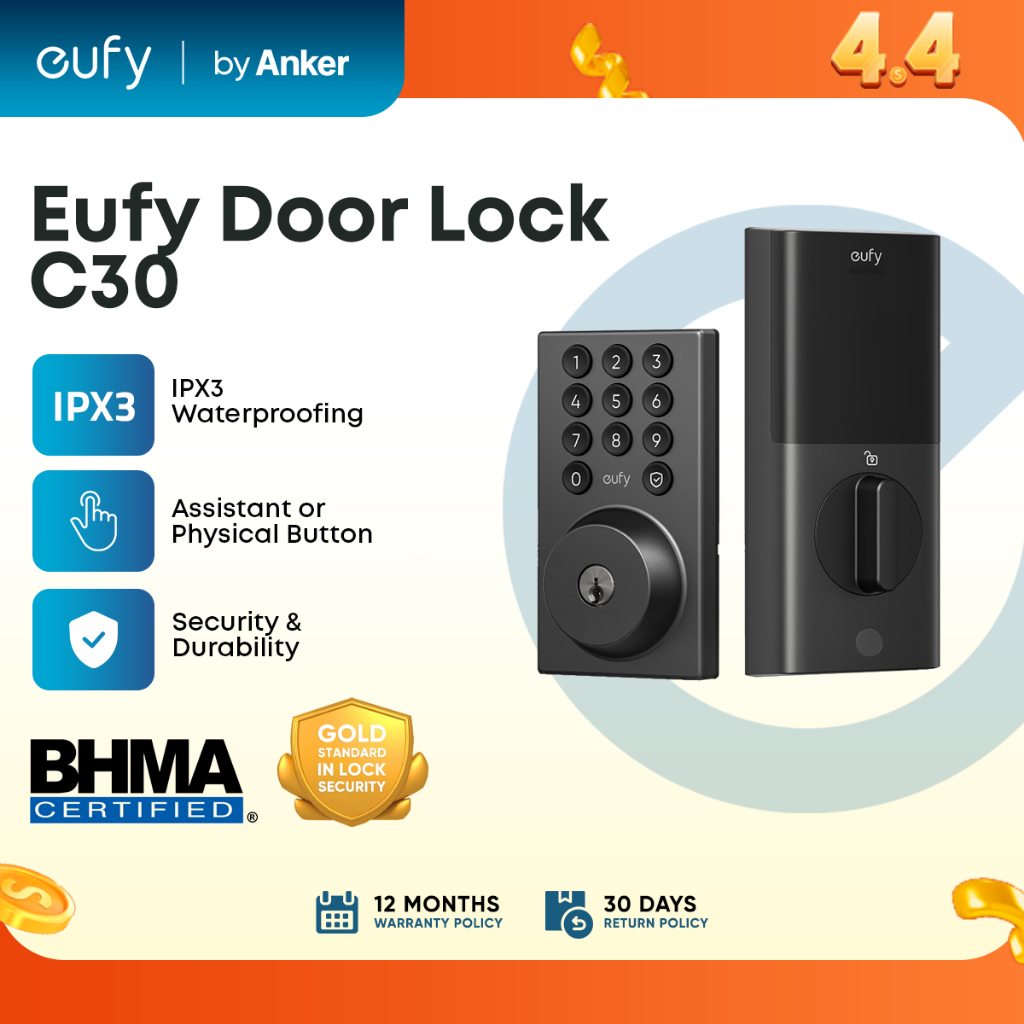 Eufy Smart Lock C30, Keyless WiFi Door Lock with Keypad, Remote App Control, Easy Install, No Bridge