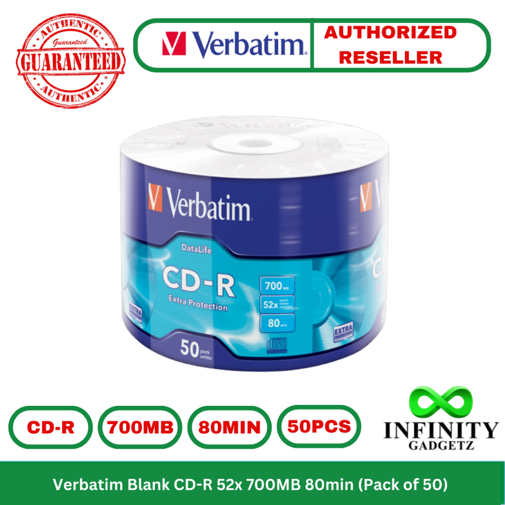 Verbatim Blank CD-R 52x 700MB 80min (Pack of 50) Recordable 43787