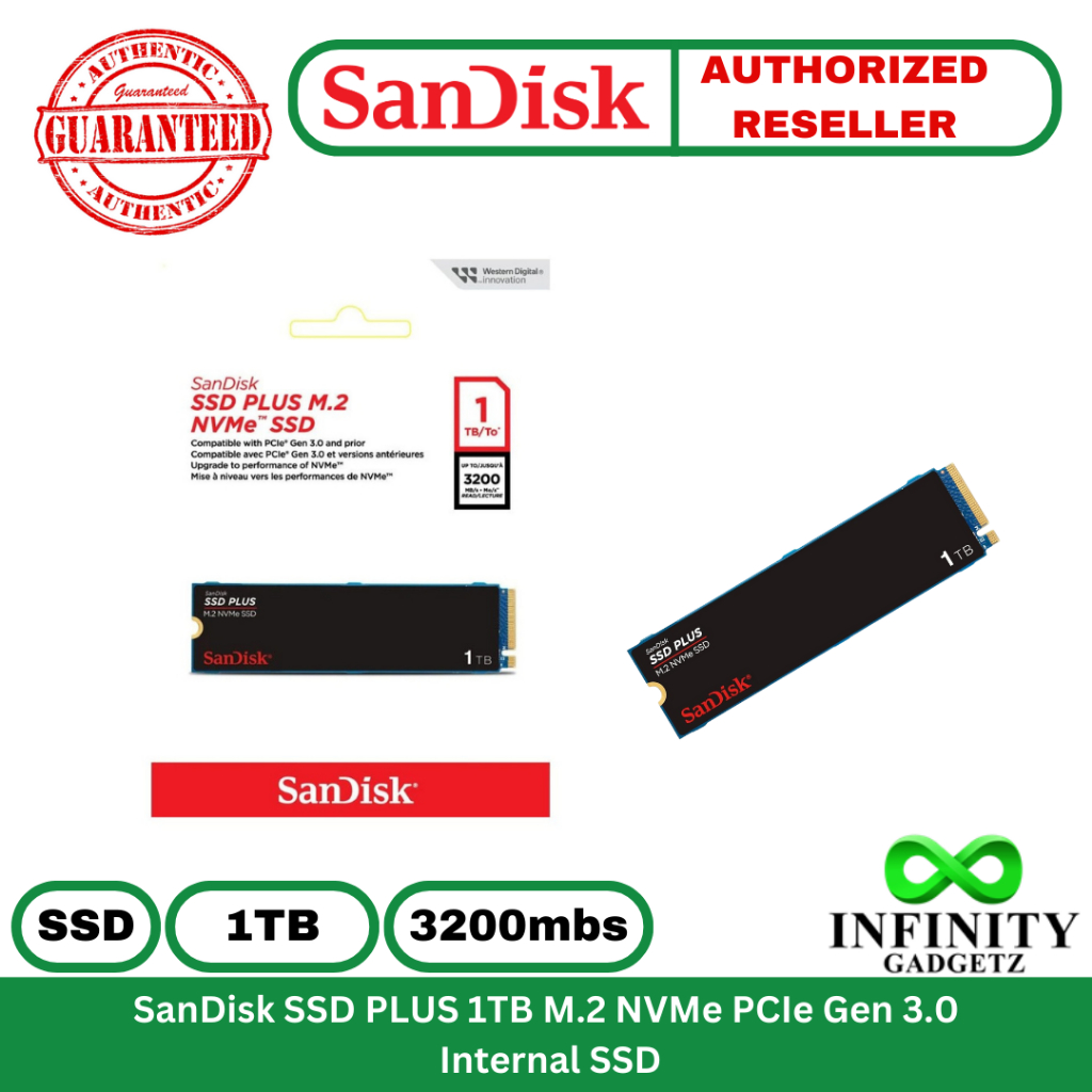 SanDisk SSD PLUS 1TB M.2 NVMe PCIe Gen 3.0 Internal SSD SDSSDA3N-1T00-G26