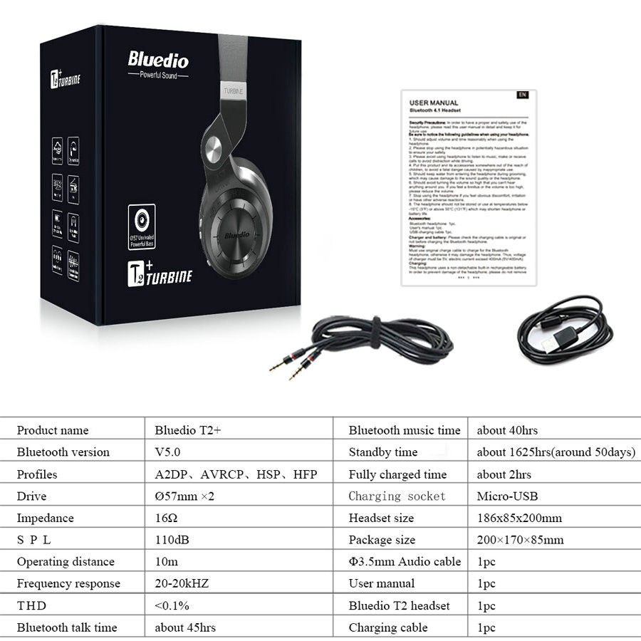 Bluedio T2+ Plus Bluetooth Headset Wireless Headphone Heavy Bass Stereo Sound Support FM Radio TF Card Microphone