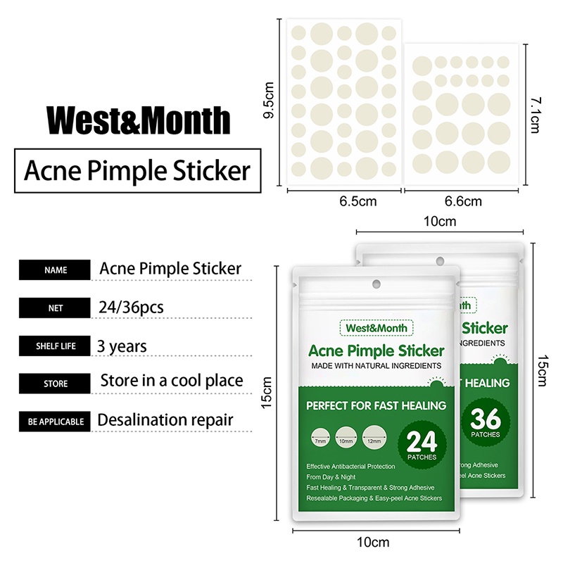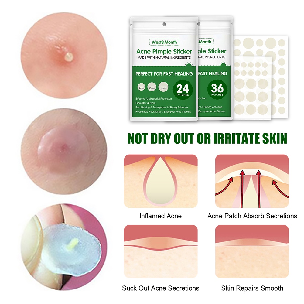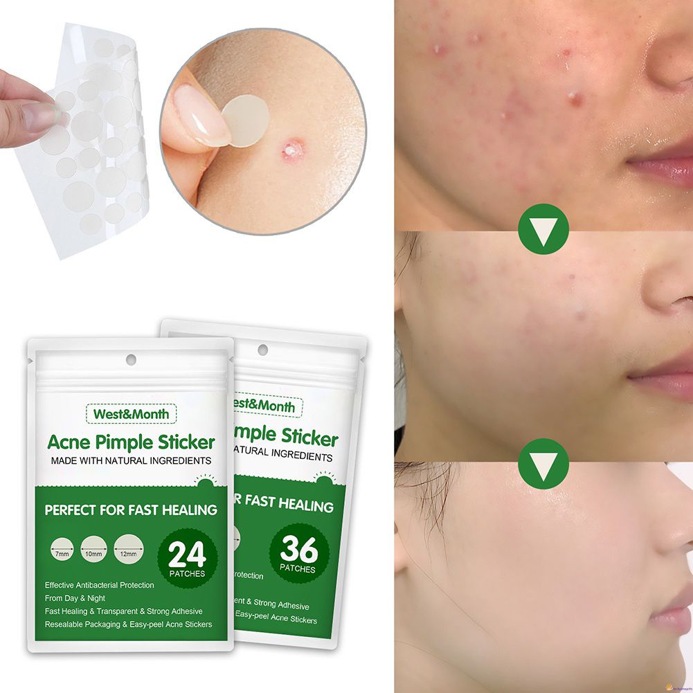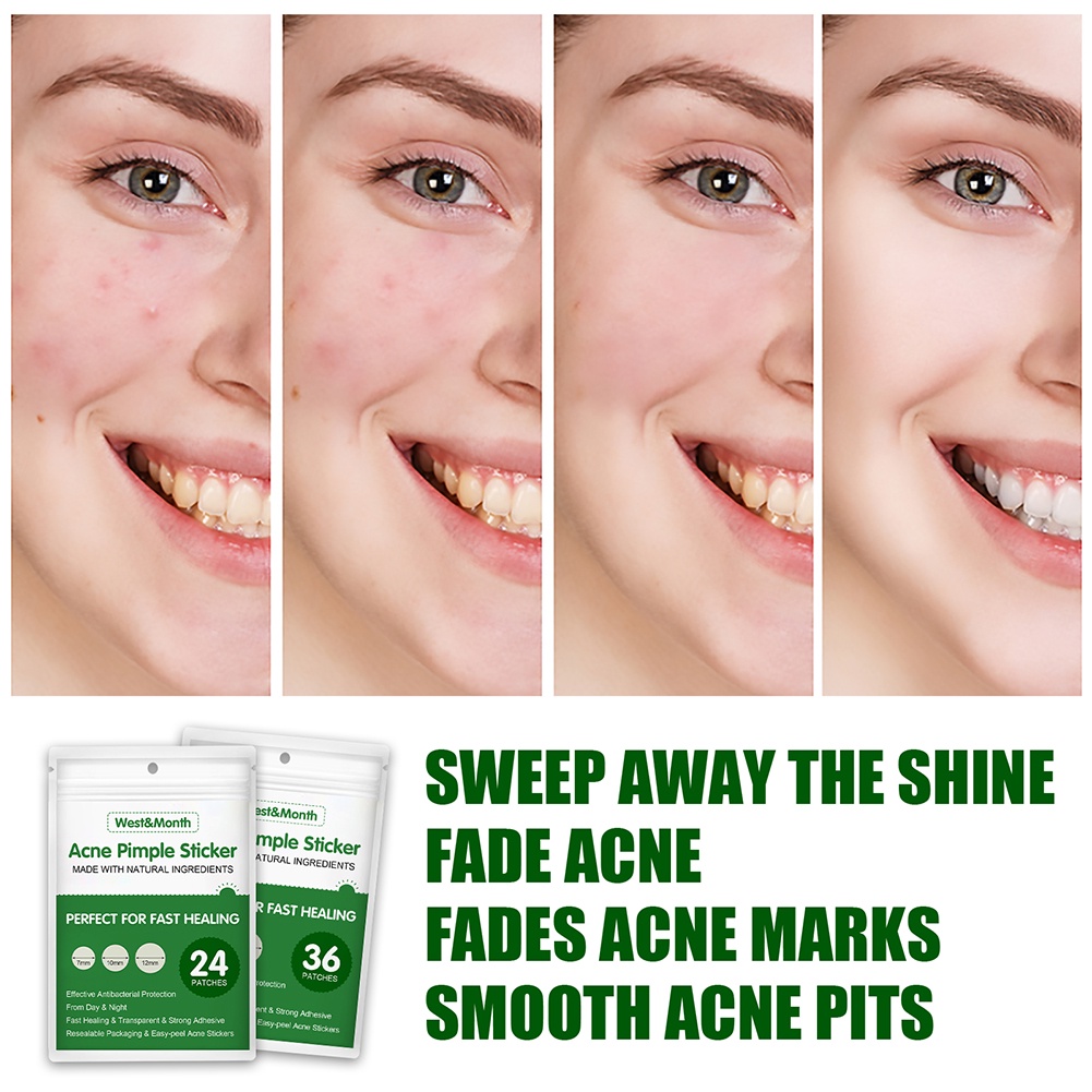 West month Waterproof Acne Pimple Patch Stickers Acne Treatment Pimple Remover Tool Invisible Ibreathable Acne Patch Skin Care 24/36 Patches