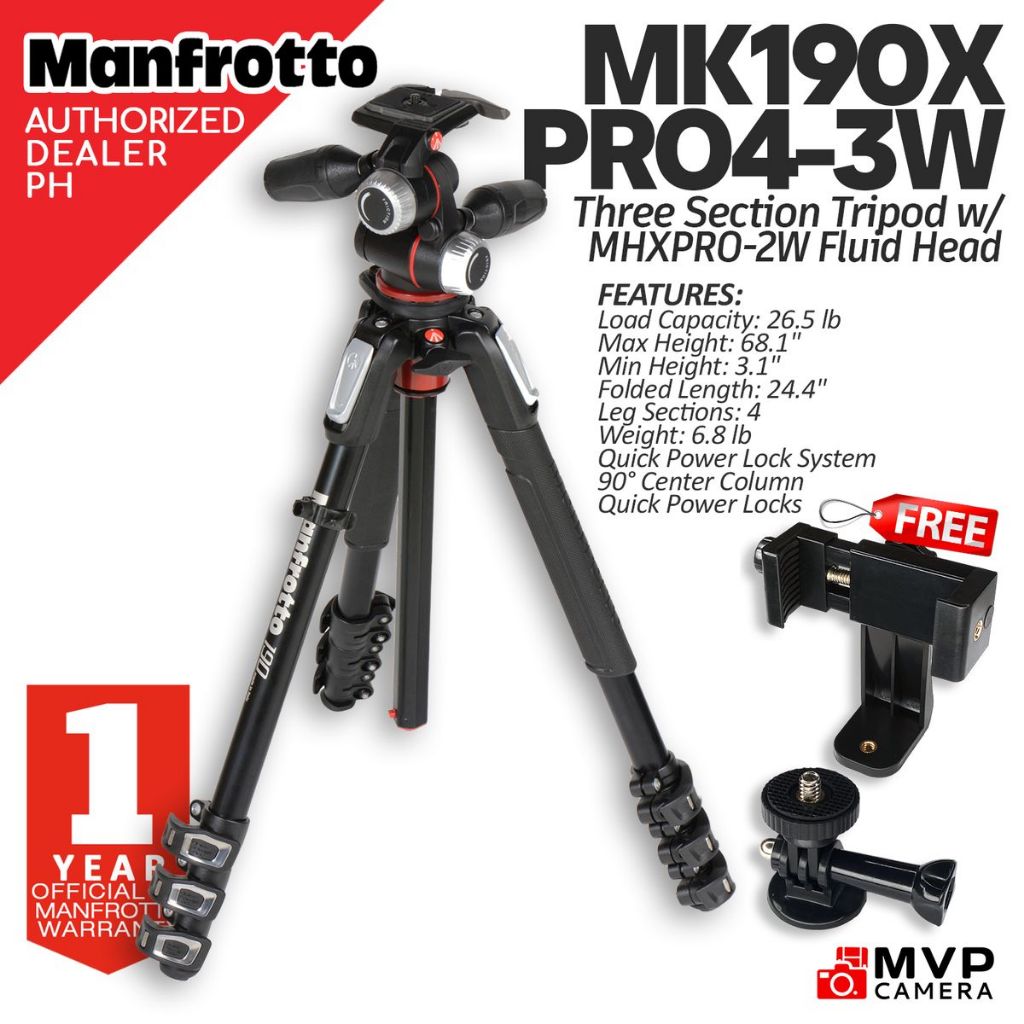 Manfrotto MK190XPRO4-3W Aluminum Tripod with 3-Way Pan/Tilt Head MVP CAMERA