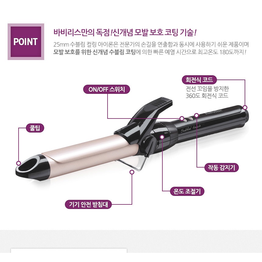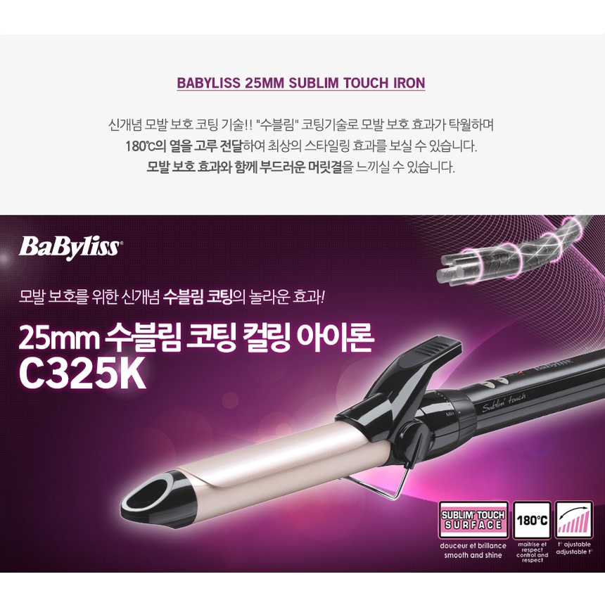 [SHIP FROM KOREA] BABYLISS SUBLIM COATED TOUCH CURLING IRON (25MM/32MM) C325K/C332K