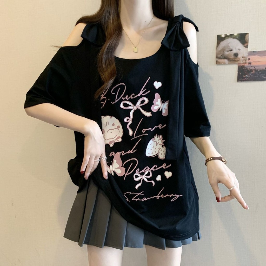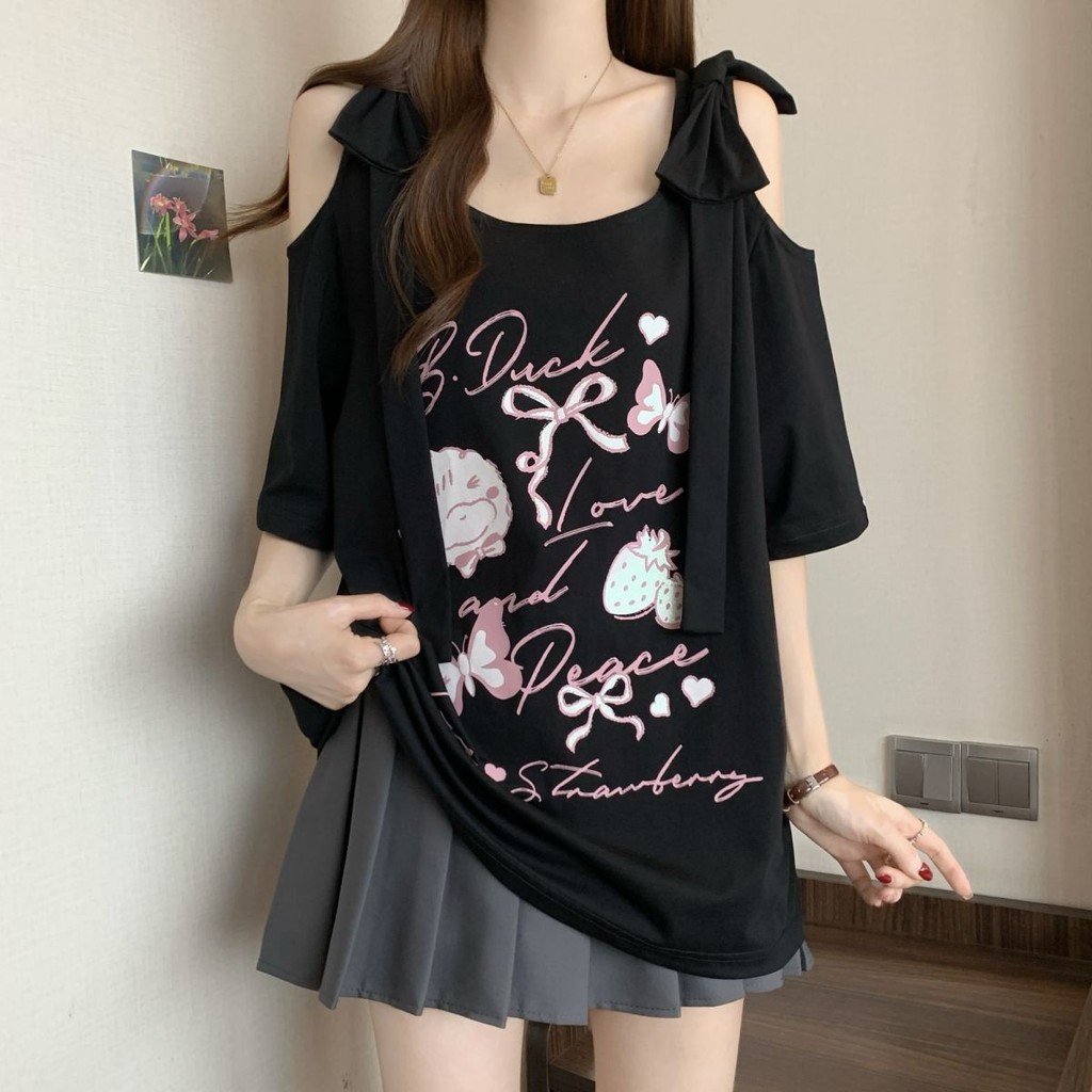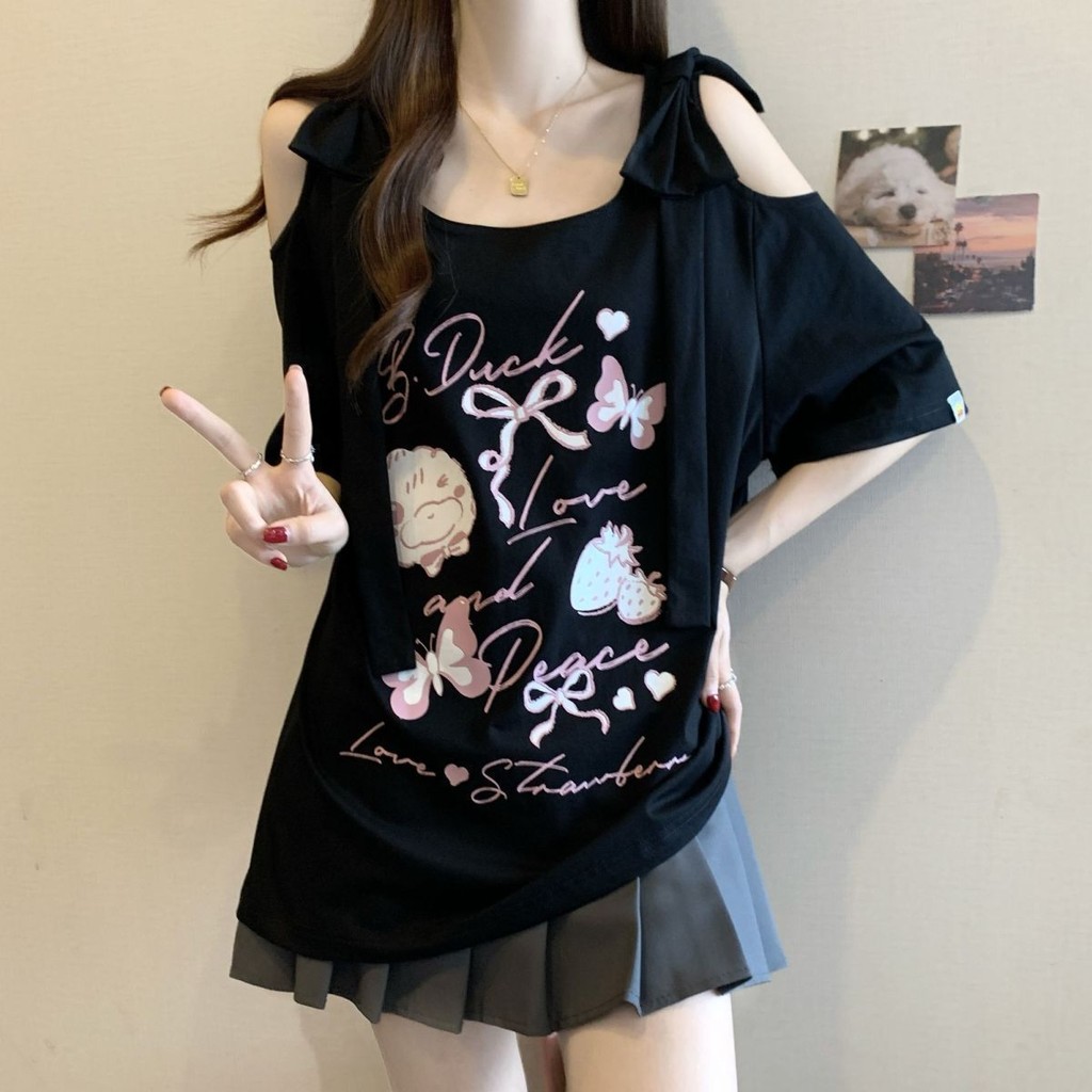 Korean Cute Tops Pink Off Shoulder T Shirt For Women Baggy Shirt Fashion