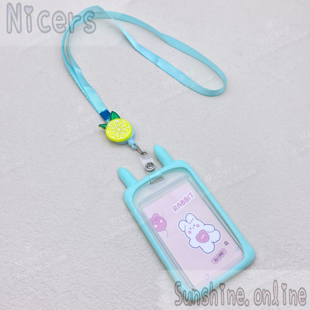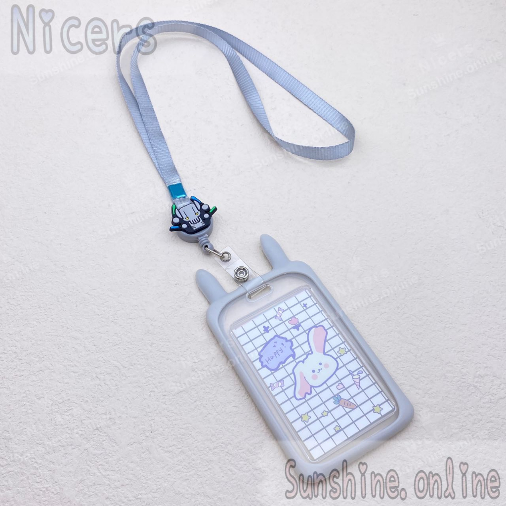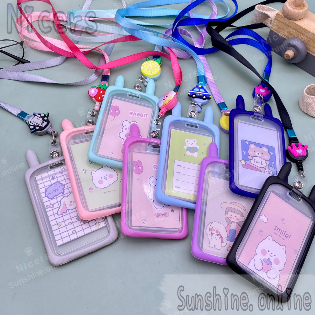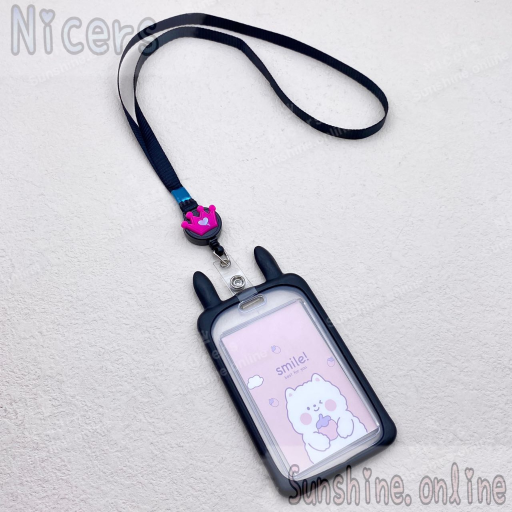 ID Card Holder Case cartoon Rabbit ear holder silicone with Retractable Reel Lanyard 10mm