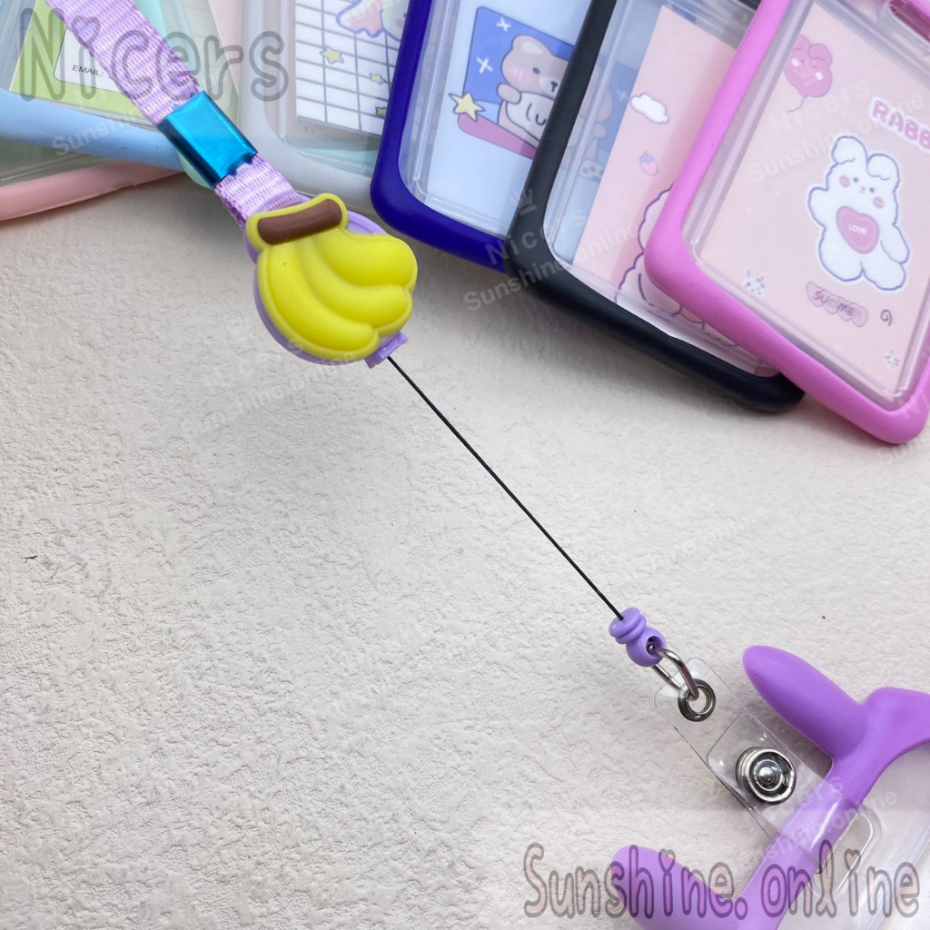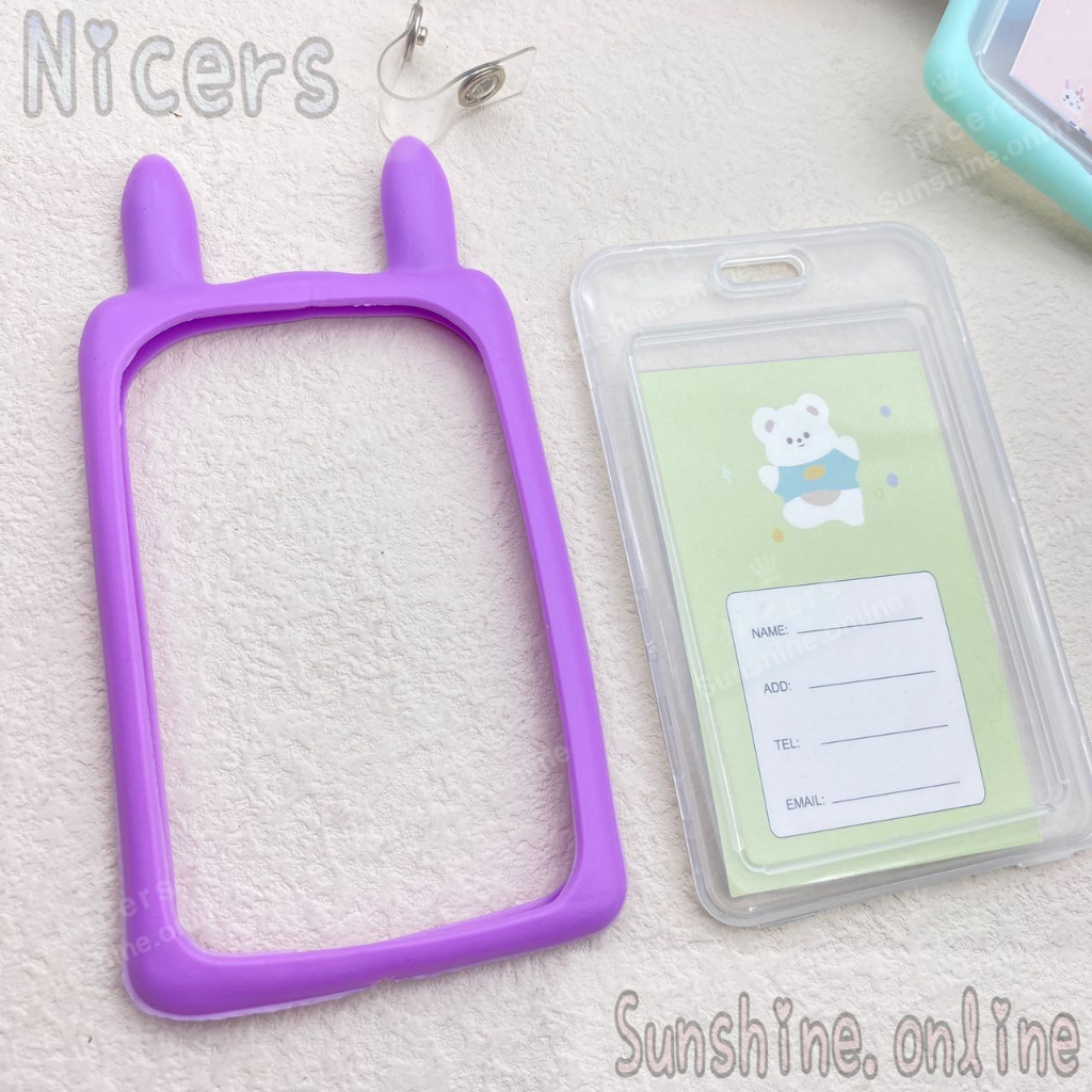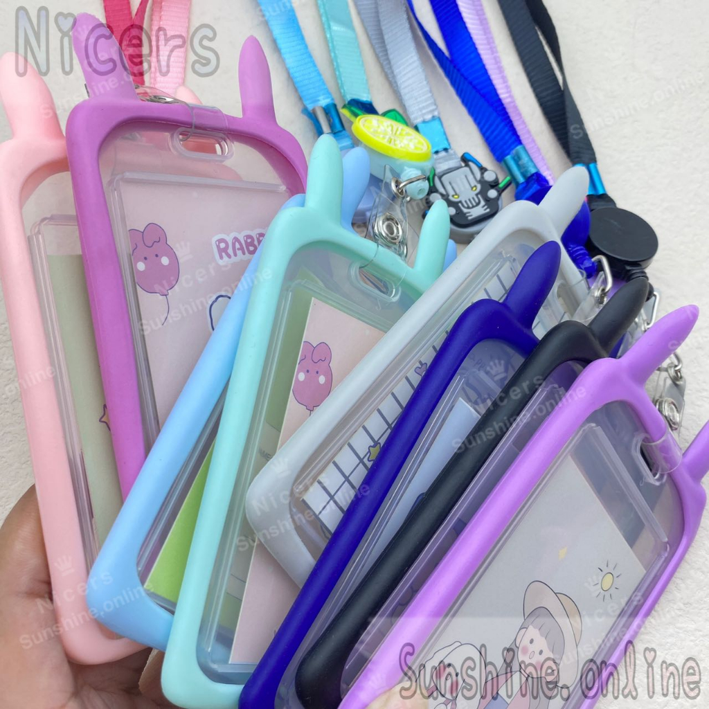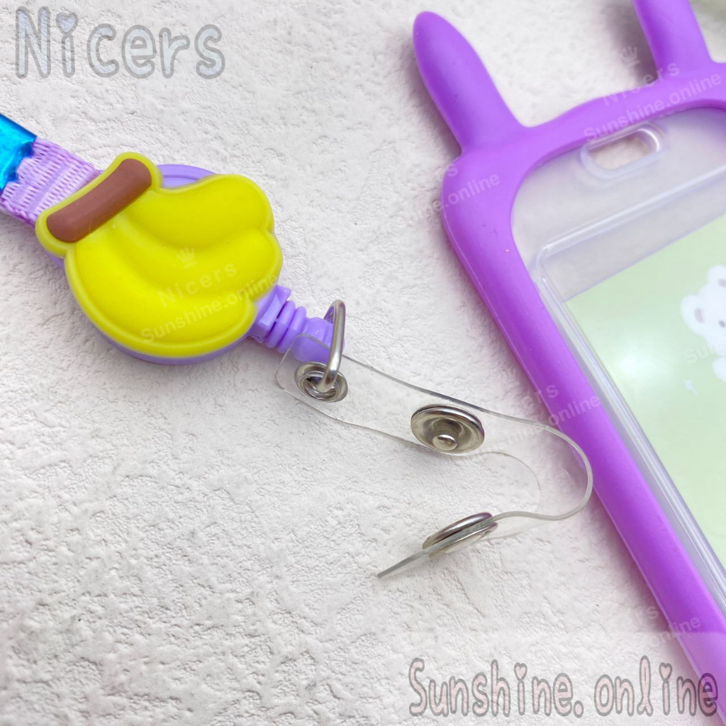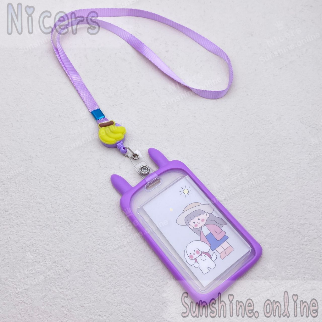 ID Card Holder Case cartoon Rabbit ear holder silicone with Retractable Reel Lanyard 10mm