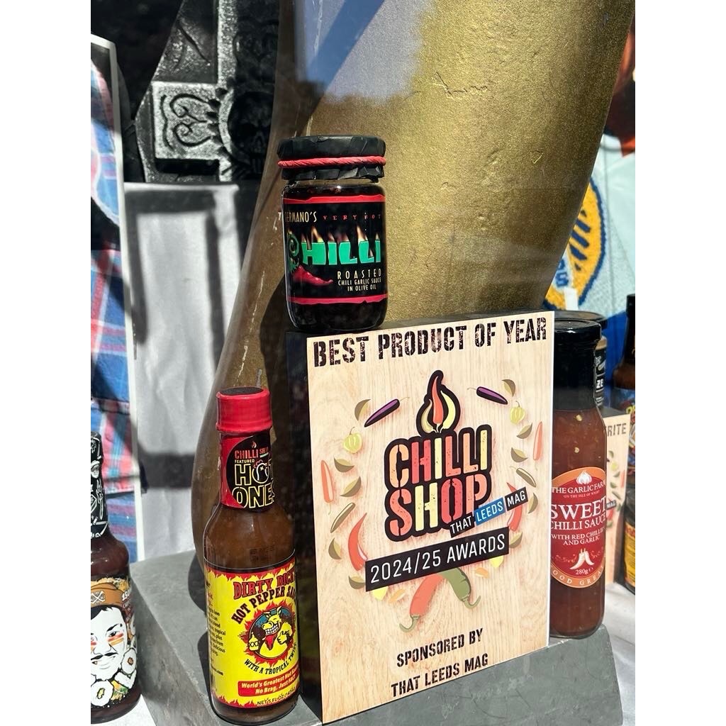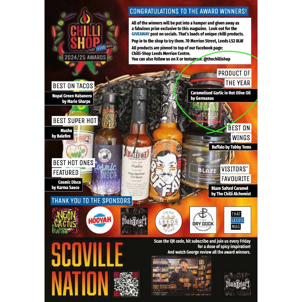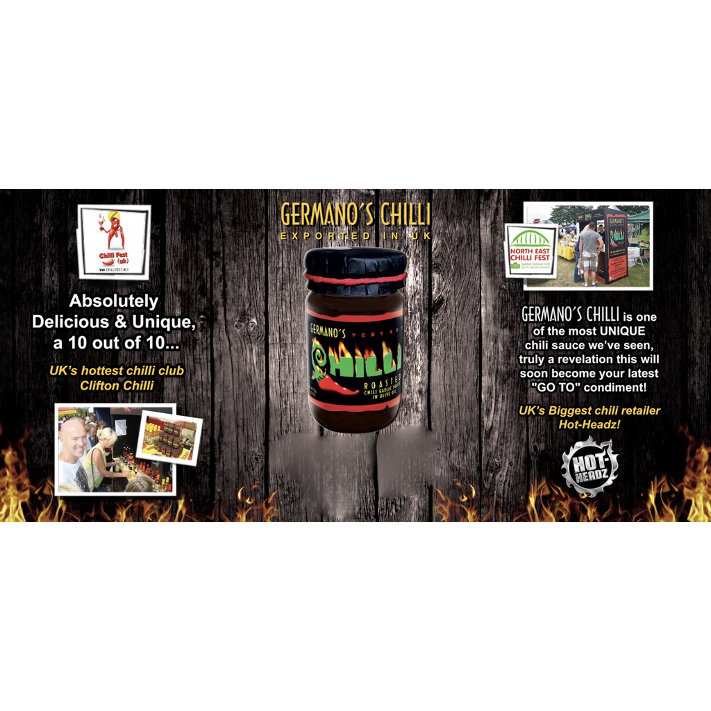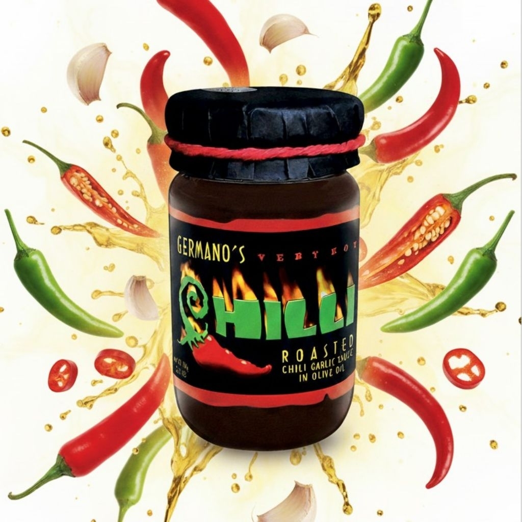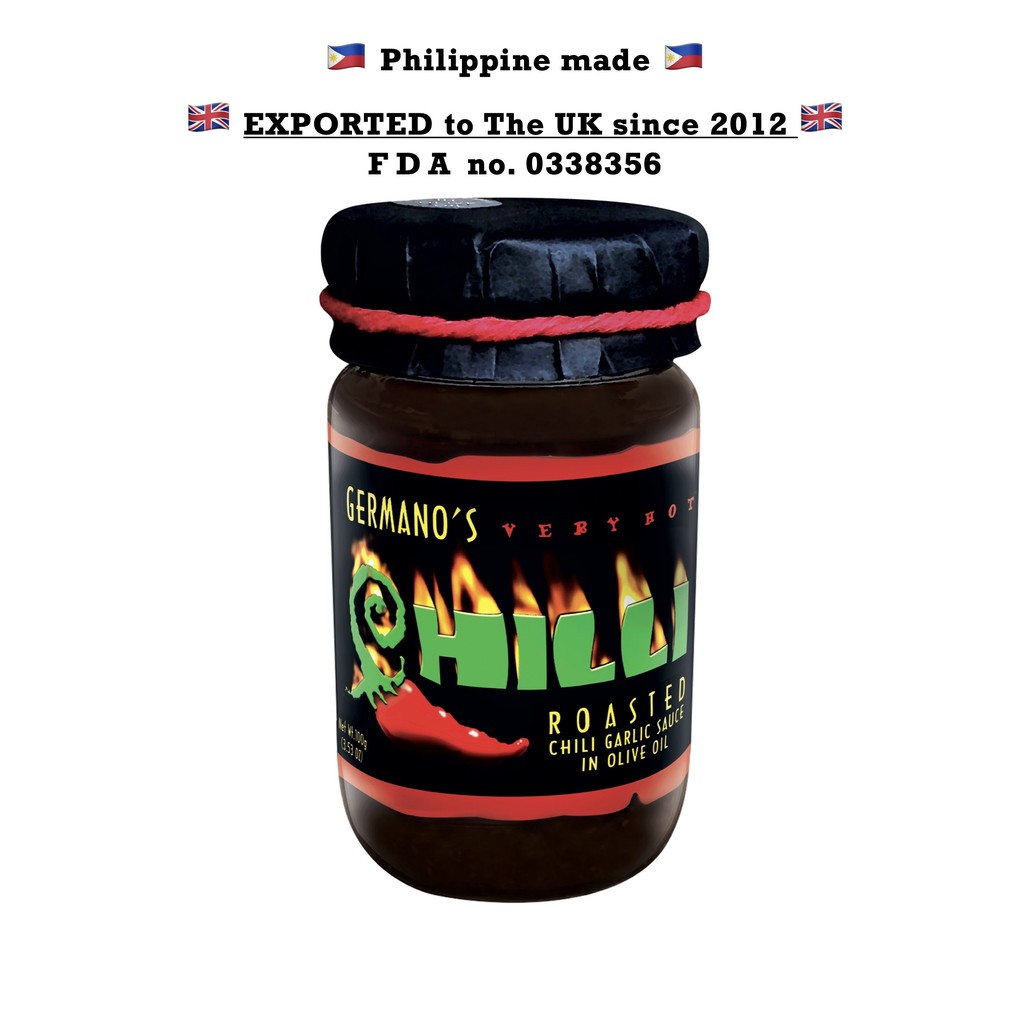 Germanos Chili Garlic Roasted in Olive Oil 4oz. bottle [Dimsum Siomai Healthy Spicy Condiment Sauce]