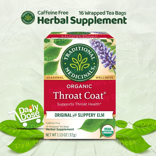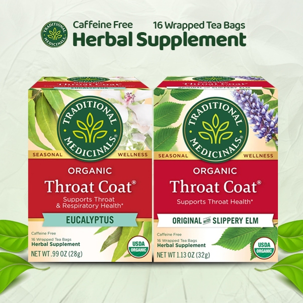 Traditional Medicinals Organic Throat Coat(Eucalyptus, Original with Slippery Elm) 1 Box 16 Tea Bags
