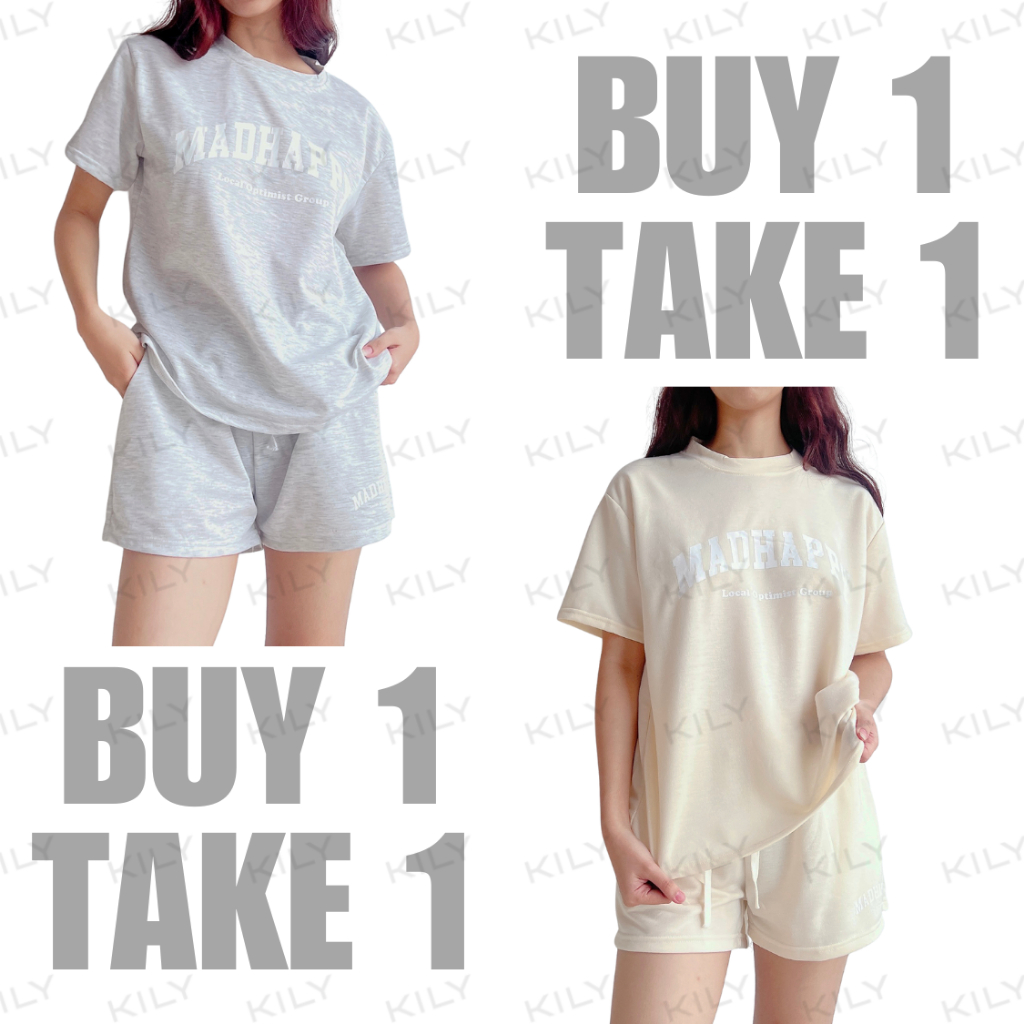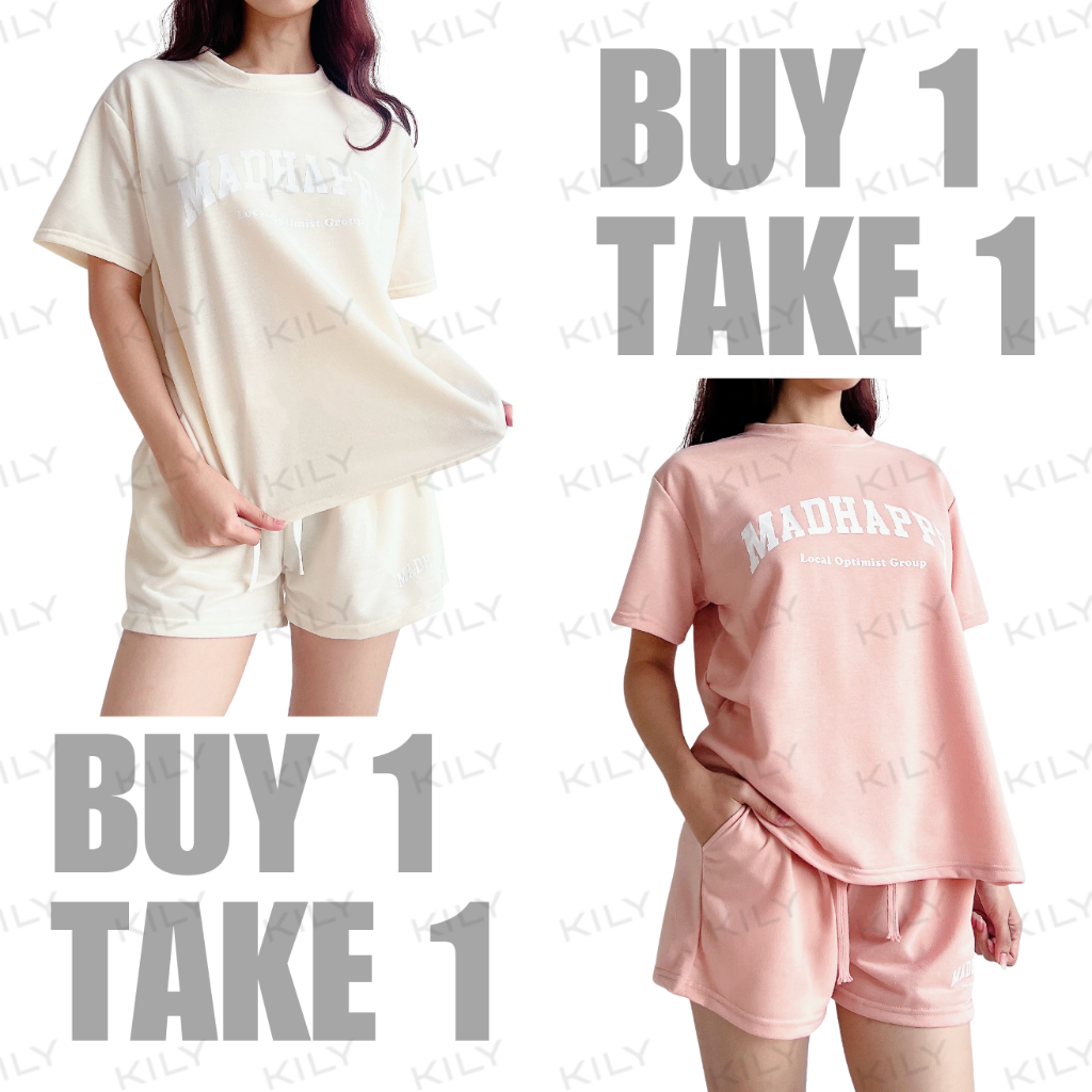 B1T1 KILY Basic Terno Shorts Set Madhappy Style Loose-Fit Short Sleeves Loungewear Unisex 7A0065