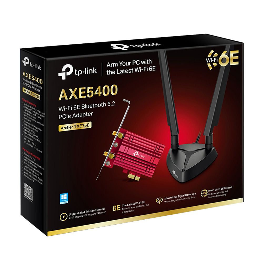 TP-Link Archer TXE75E AXE5400 Tri-Band Wi-Fi 6E Bluetooth 5.2 PCIe Adapter