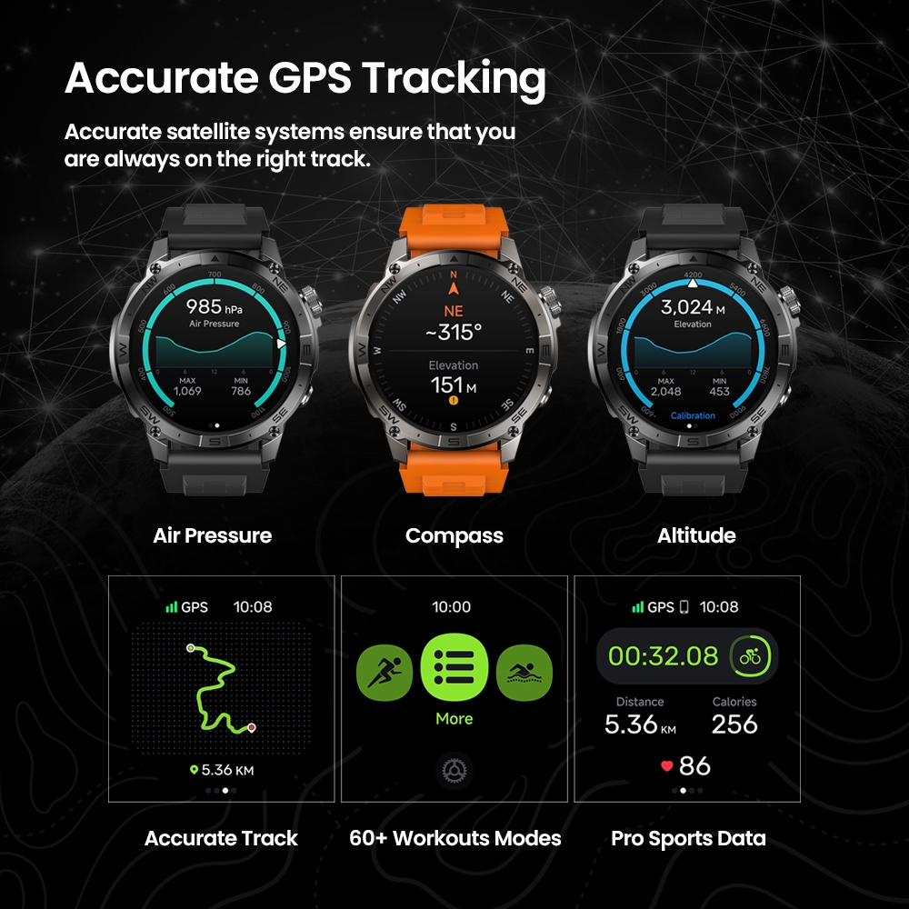 Zeblaze Stratos 2 Plus GPS Smart Watch 1.43'' AMOLED Display Compass Barometric Altimeter Fitness Tracking Smartwatch