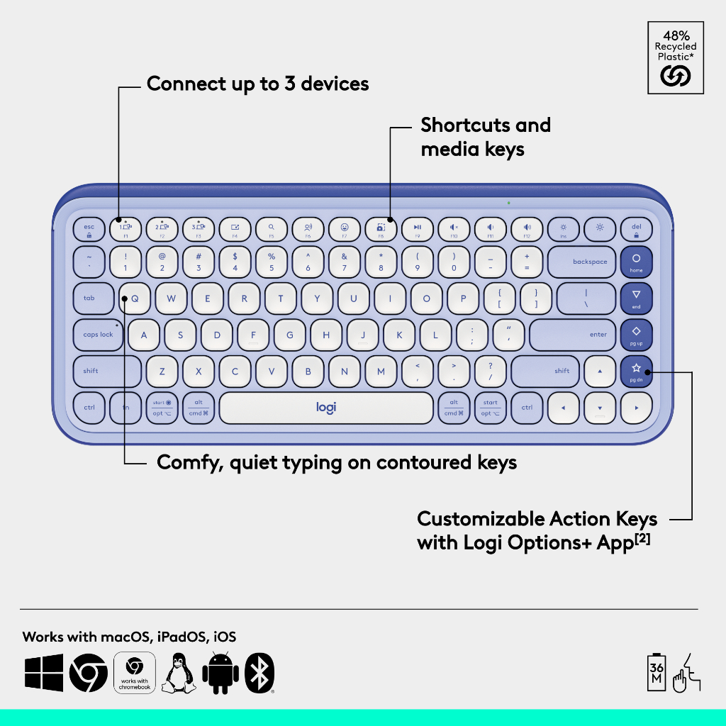 Logitech Pop Icon Keys 4 Customizable Button Low-Profile Silent Key Wireless Keyboard