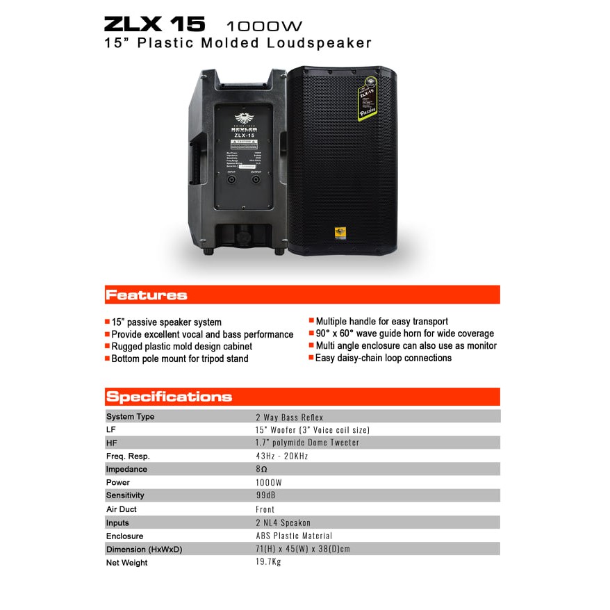 1pc. ZLX-15 free 5M speakwire ZLX15 15iches Plastic molded loudspeaker 15 speaker 1000w
