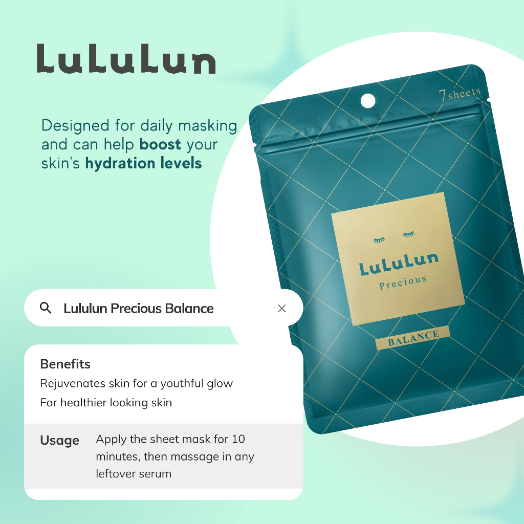 Lululun Precious Green 7 Sheets Anti Aging Rejuvenating Face Mask - Moisturizing Collagen Japan